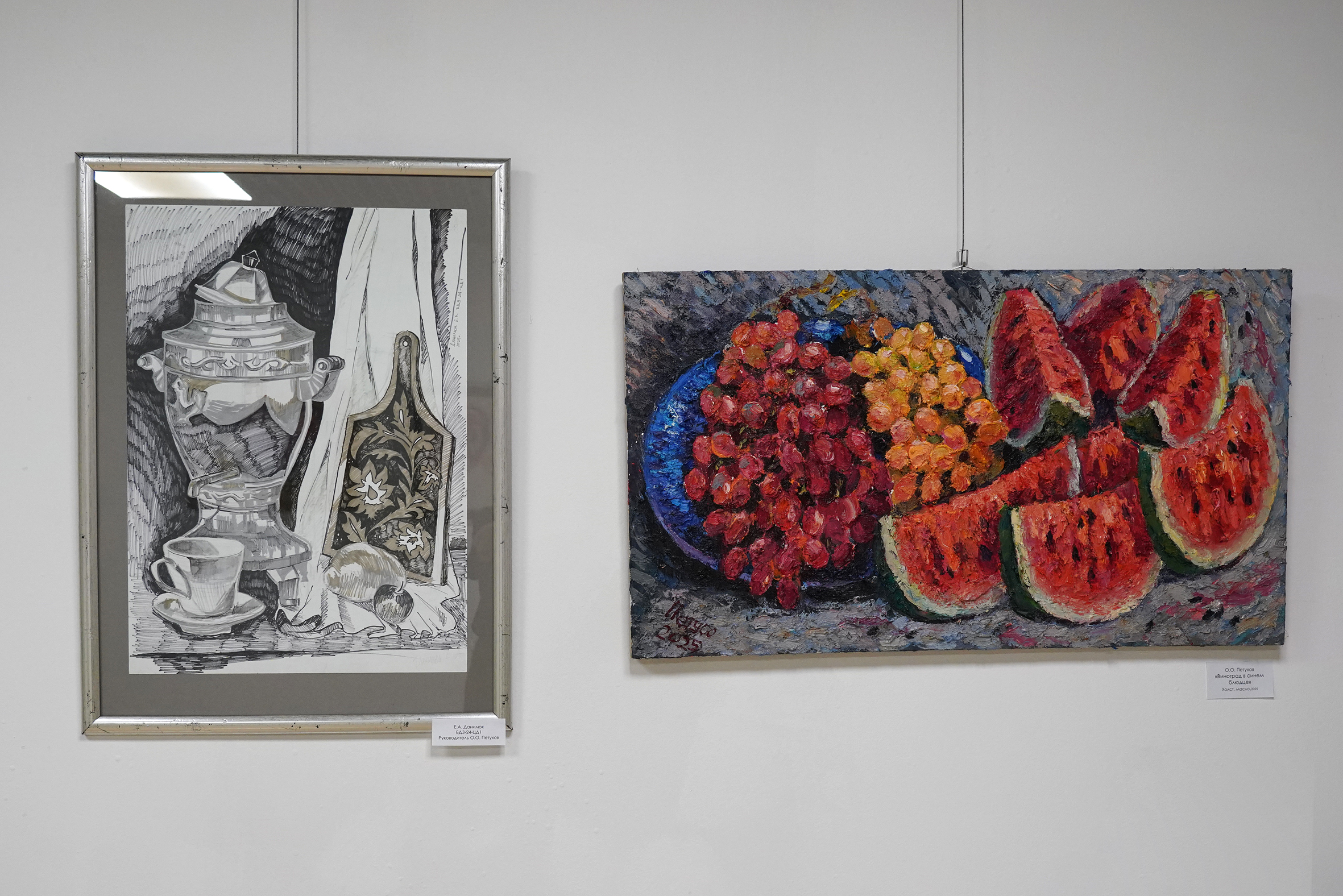 Экспозиция в формате «учитель – ученик» приоткрывает завесу над творческим процессом: здесь можно увидеть, как рождаются художественные решения – от первых набросков до завершённых работ. Выставка включает работы преподавателей ВВГУ, членов Союза художников, а также их студентов, обучающихся в Институте туризма и креативных индустрий.