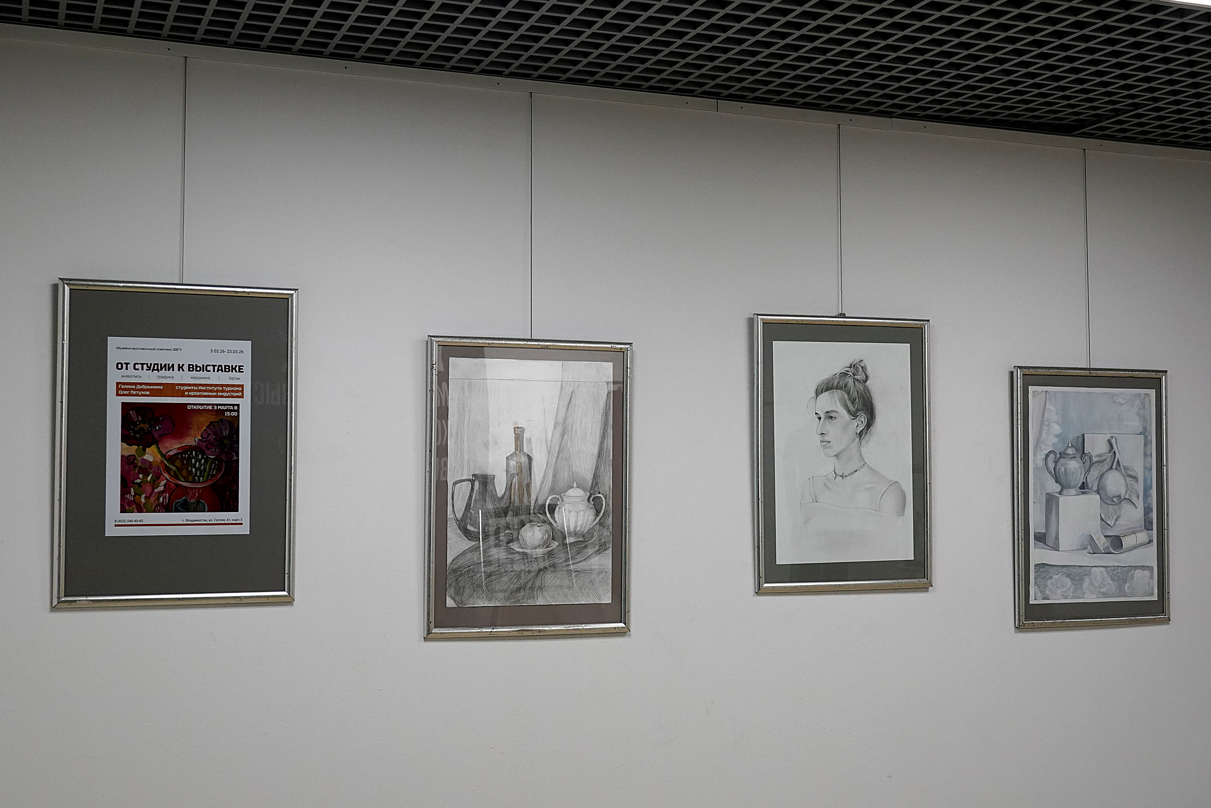 В Музейно‑выставочном комплексе ВВГУ открылась экспозиция «От студии к выставке». Желающие могут познакомиться с живописью, графикой, керамикой и батиком до 23 марта включительно.