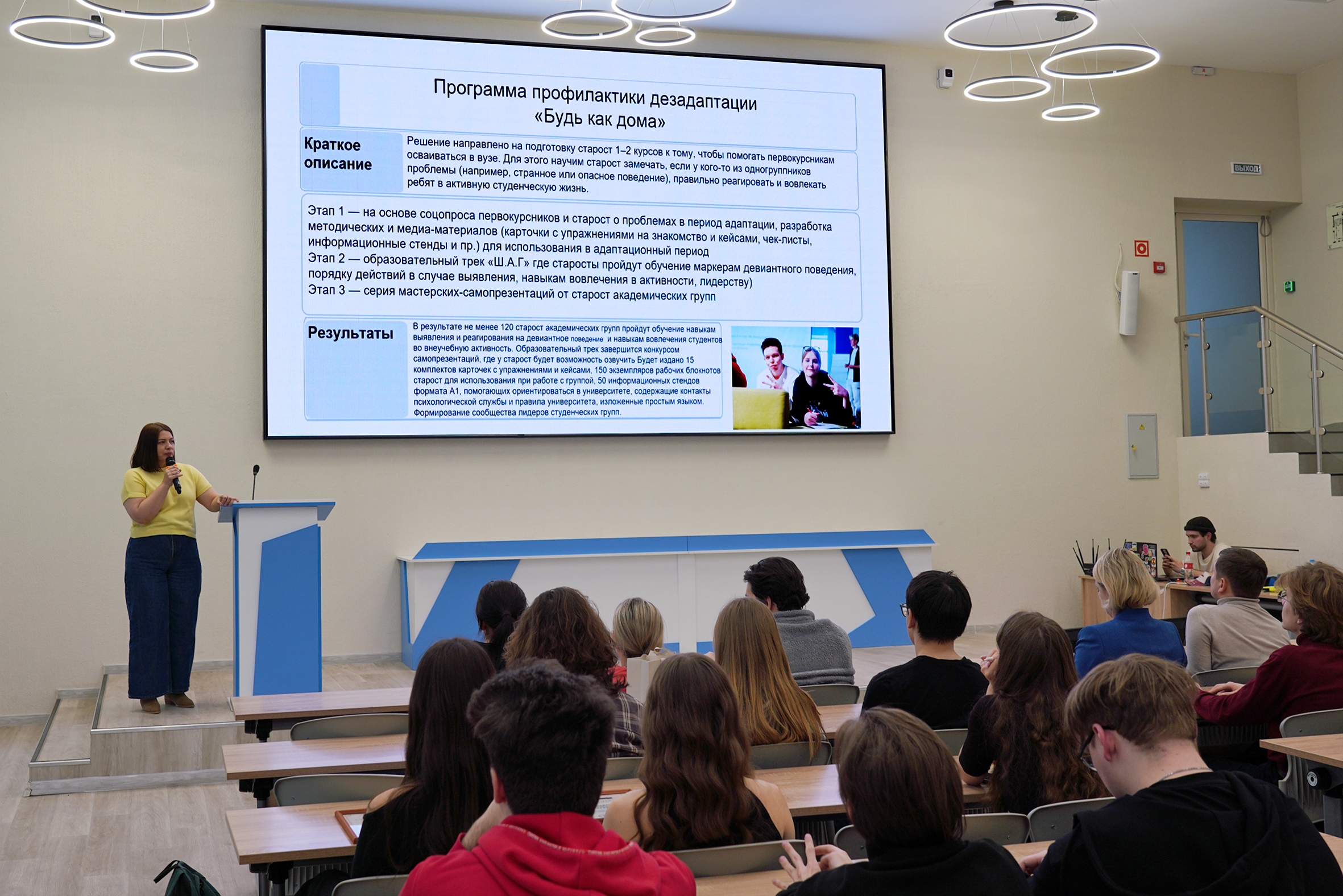 Среди проектов – открытый лекторий, музыкальная студия, медиацентр, школа студенческого самоуправления, курсы для адаптации первокурсников и другие инициативы. Общая цель – привлечь молодёжь к саморазвитию и обеспечить их комфортное студенчество.