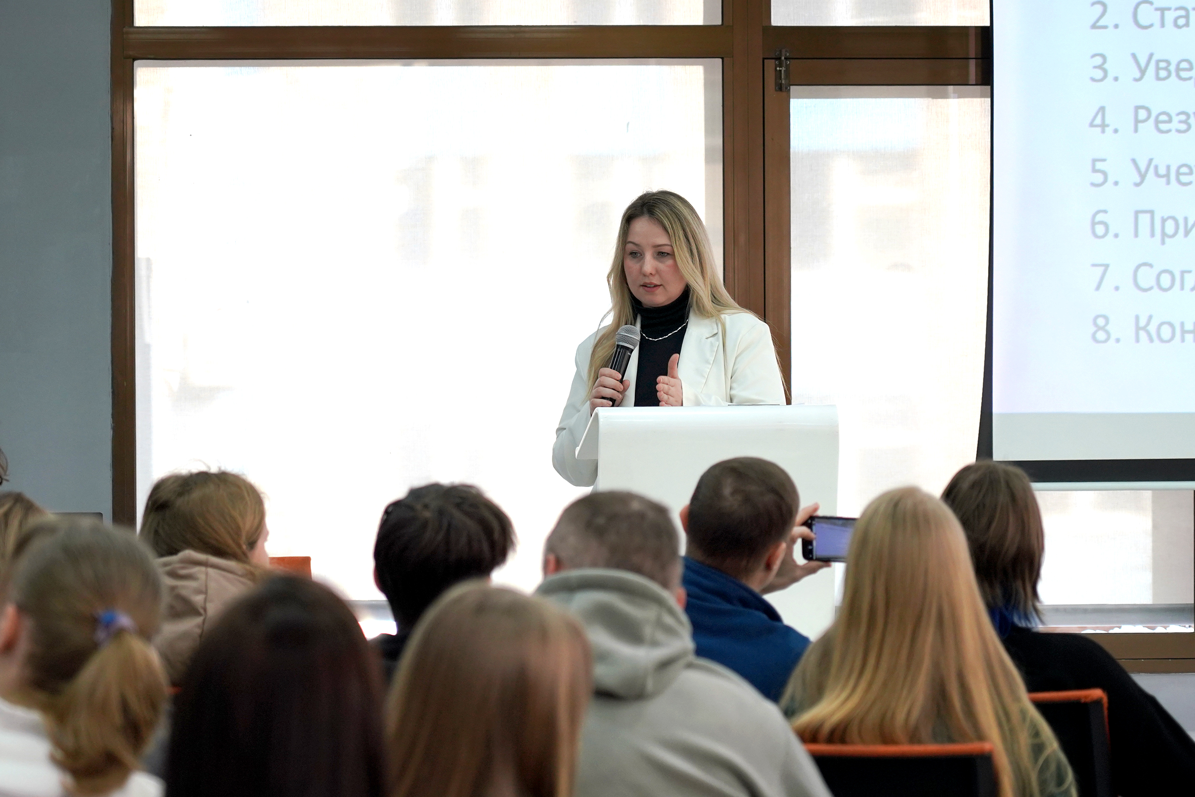 Он подчеркнул, что одна из важных составляющих получения образования в ВВГУ – учебный процесс, связанный с практическими занятиями. Так, например, в вузе реализуется проектное обучение. Это форма деятельности, для реализации которой привлекаются специалисты из реального сектора. Так, для формирования тем и задач проектов, а также для их оценки привлекаются индустриальные партнеры. В процессе проектного обучения студенты выполняют реальные задачи для компаний-партнеров, знакомятся с будущими работодателями, а те, в свою очередь, в процессе работы со студентами могут найти перспективных будущих сотрудников для своих компаний.![]()