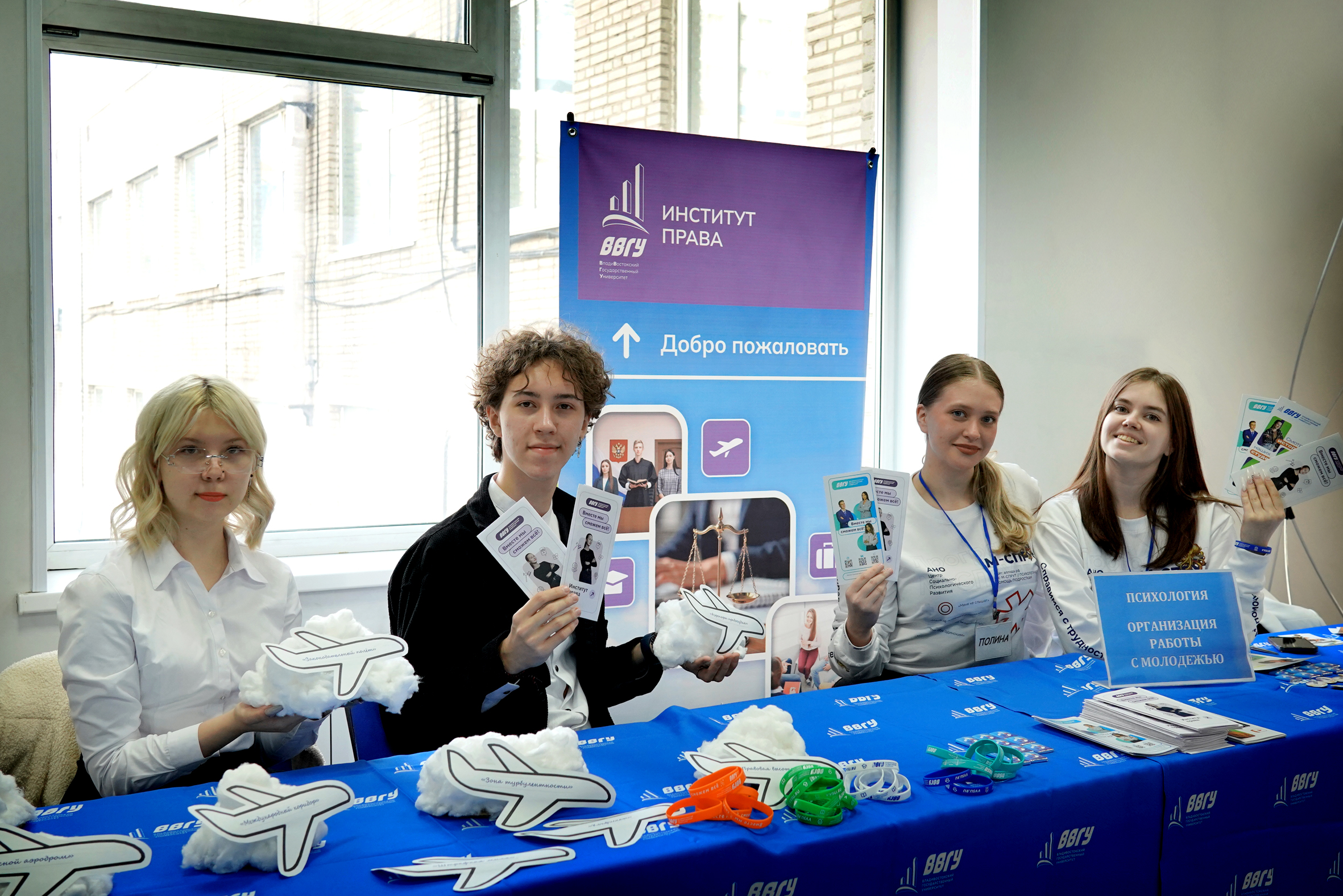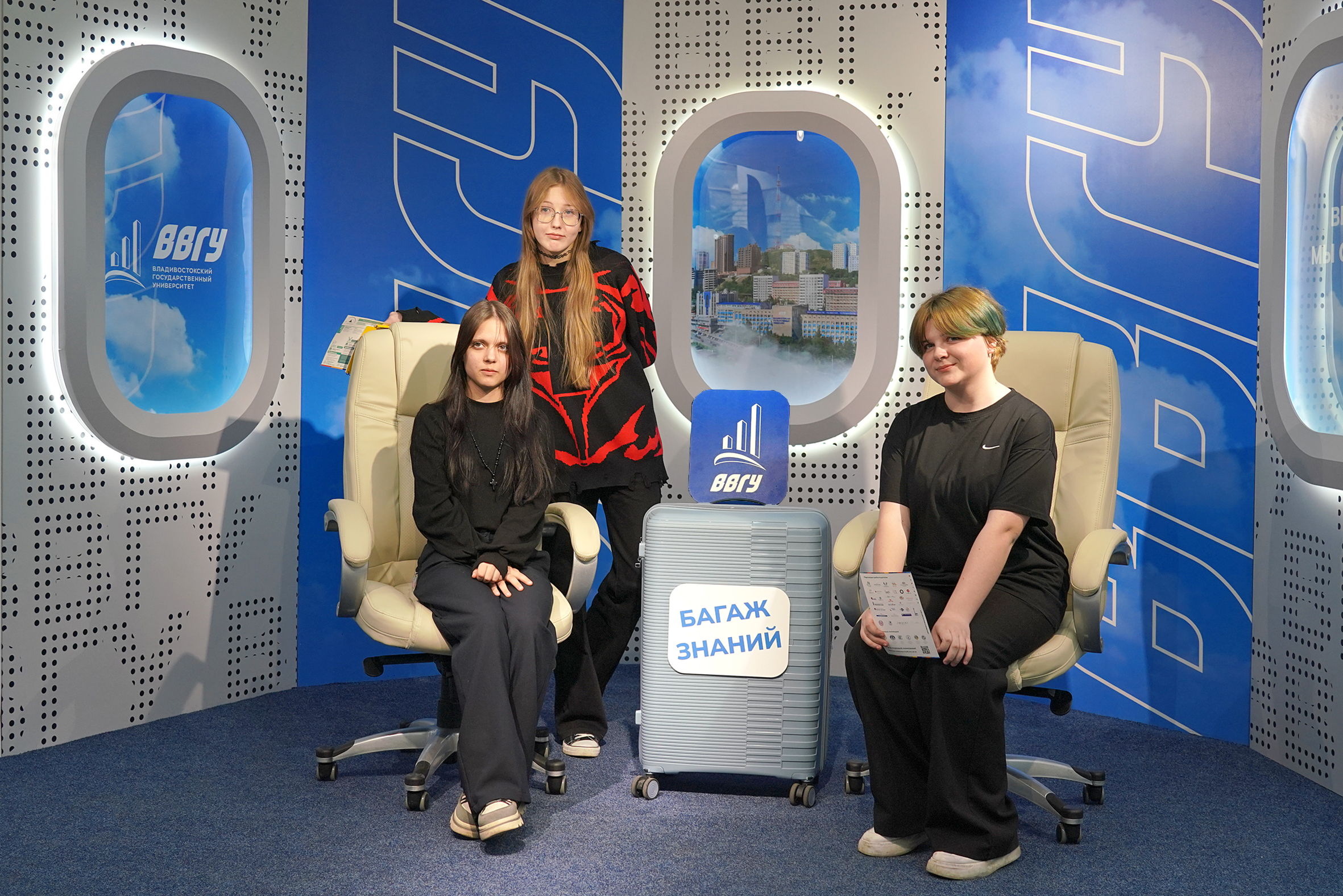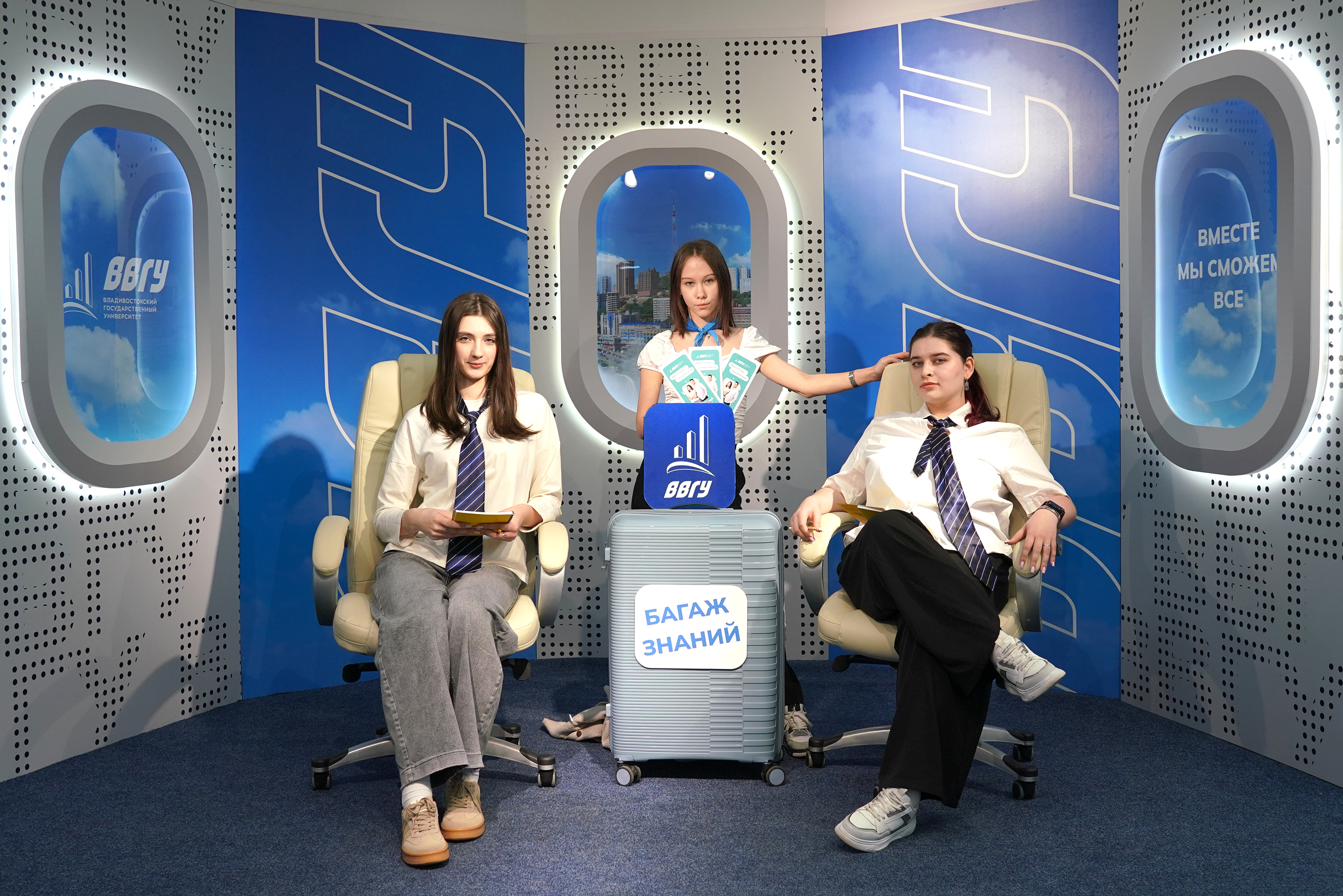 В этом году день открытых дверей был стилизован под полет на самолете. На входе в университет ребят и их родителей встречали проводники, которые регистрировали гостей на рейс в счастливое будущее и провожали на посадку в увлекательный полет по институтам и колледжам университета. Здесь специалисты ВВГУ и нынешние студенты рассказывали о направлениях подготовки, реализуемых вузом, а также отвечали на все интересующие вопросы.