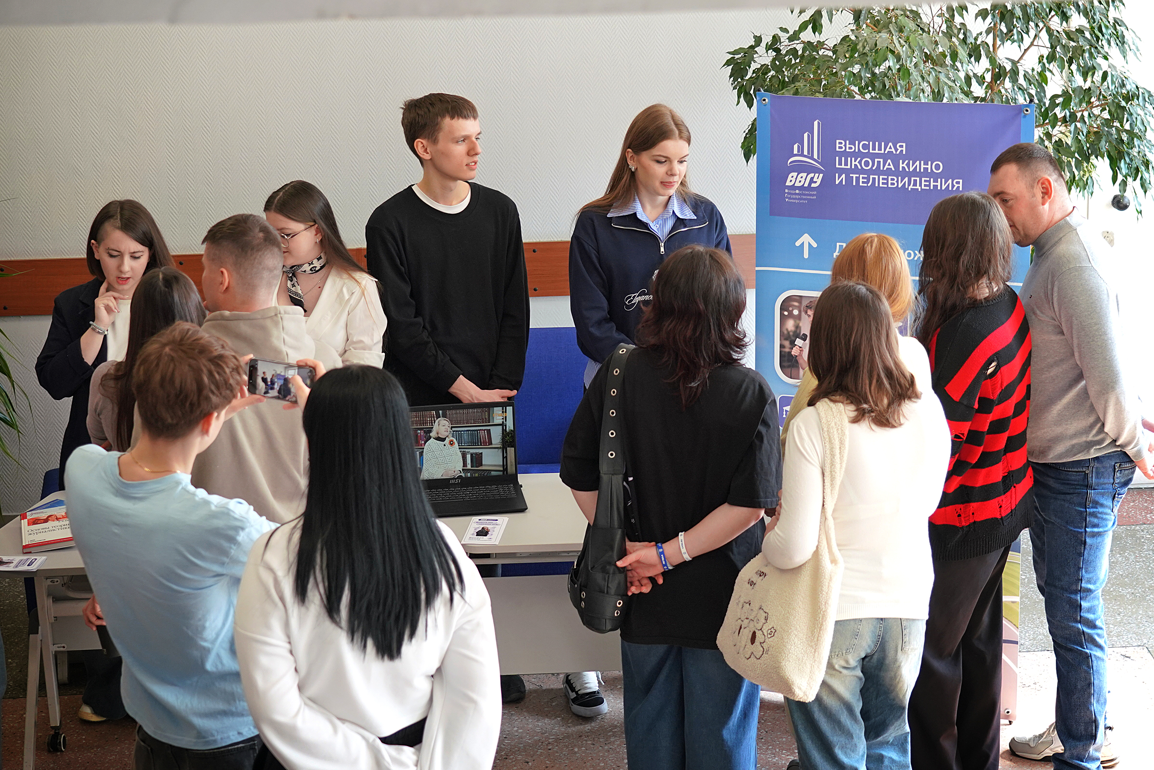 С 11 утра в Зимнем саду работала выездная студия радио «Владивосток ФМ». В прямом эфире эксперты ВВГУ рассказывали журналистам и слушателям о самых востребованных программах и о флагманских направлениях подготовки.