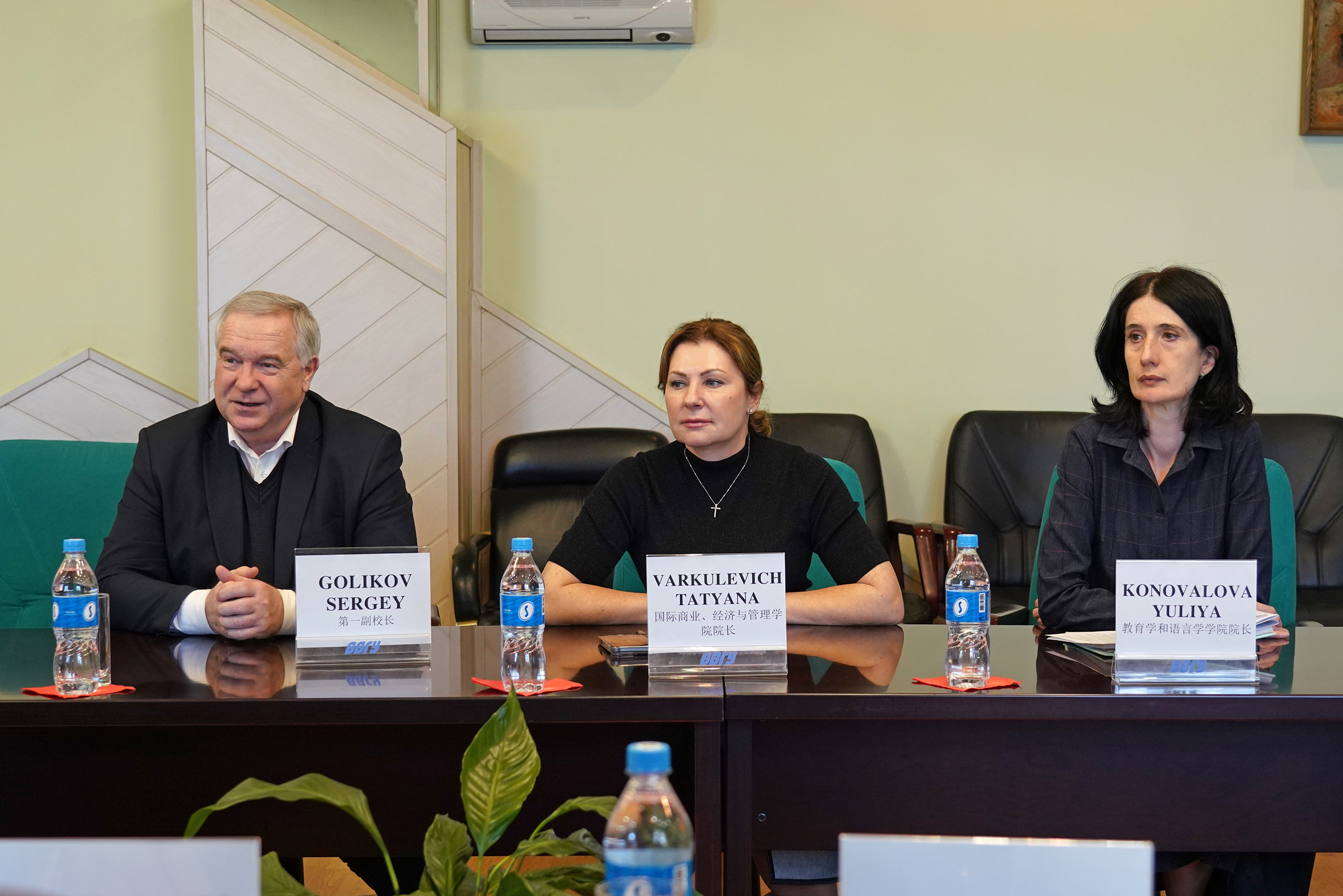 Владивостокский государственный университет на встрече представили первый проектор Сергей Голиков, проректор по академической политике Ольга Батурина, директор департамента международной и культурной деятельности Пётр Сёмин, директор Института педагогики и лингвистики Юлия Коновалова, директор Института туризма и креативных индустрий Галина Гомилевская, директор Института международного бизнеса, экономики и управления Татьяна Варкулевич, заместитель директора департамента международной и культурной деятельности Ольга Северьянова.