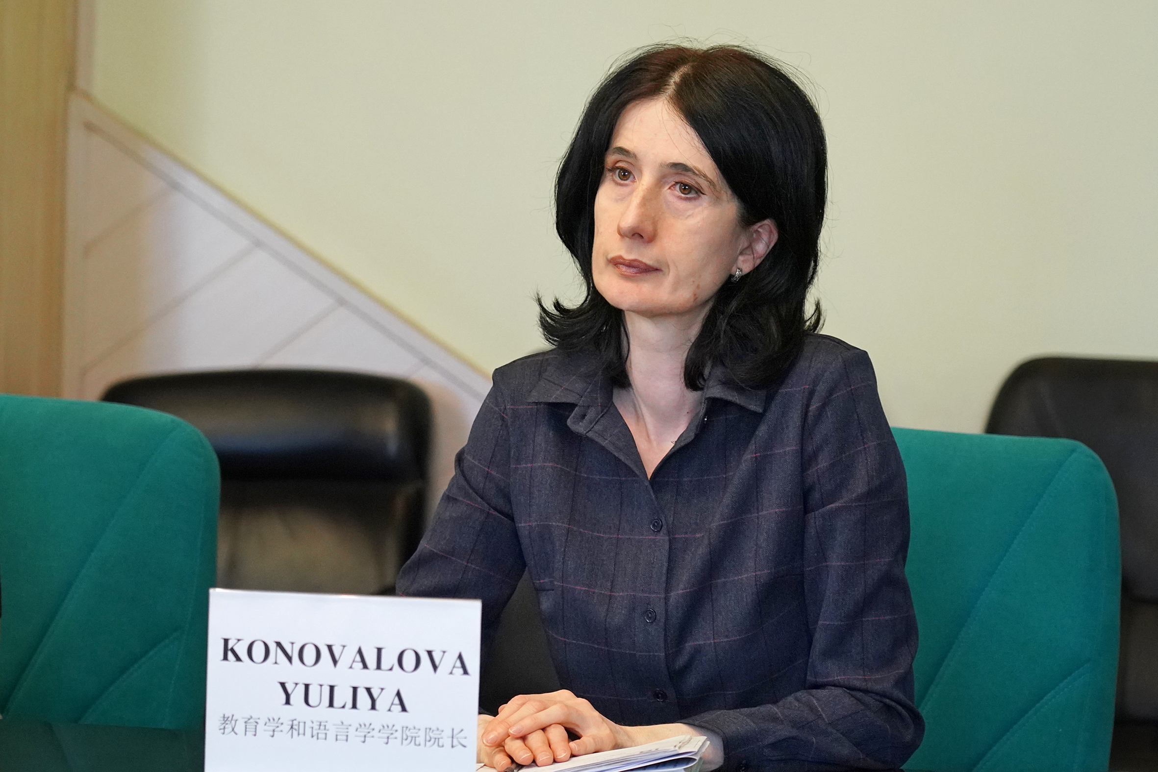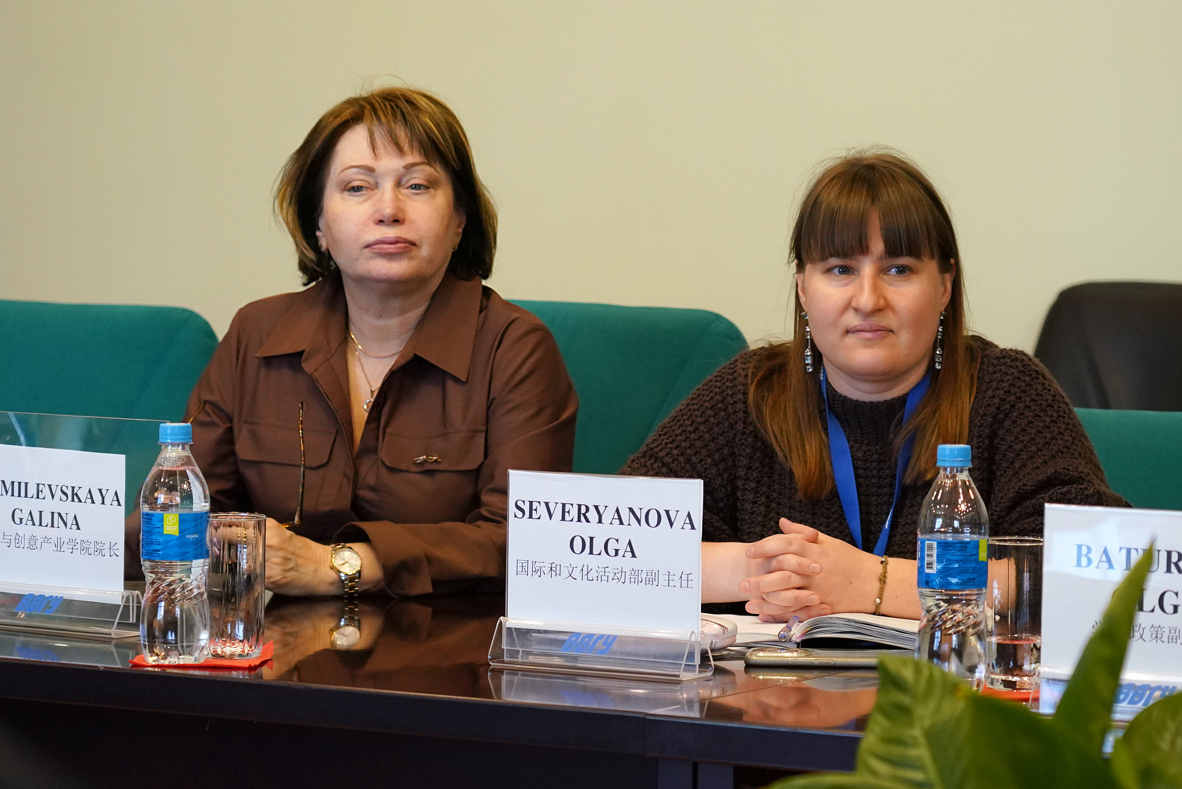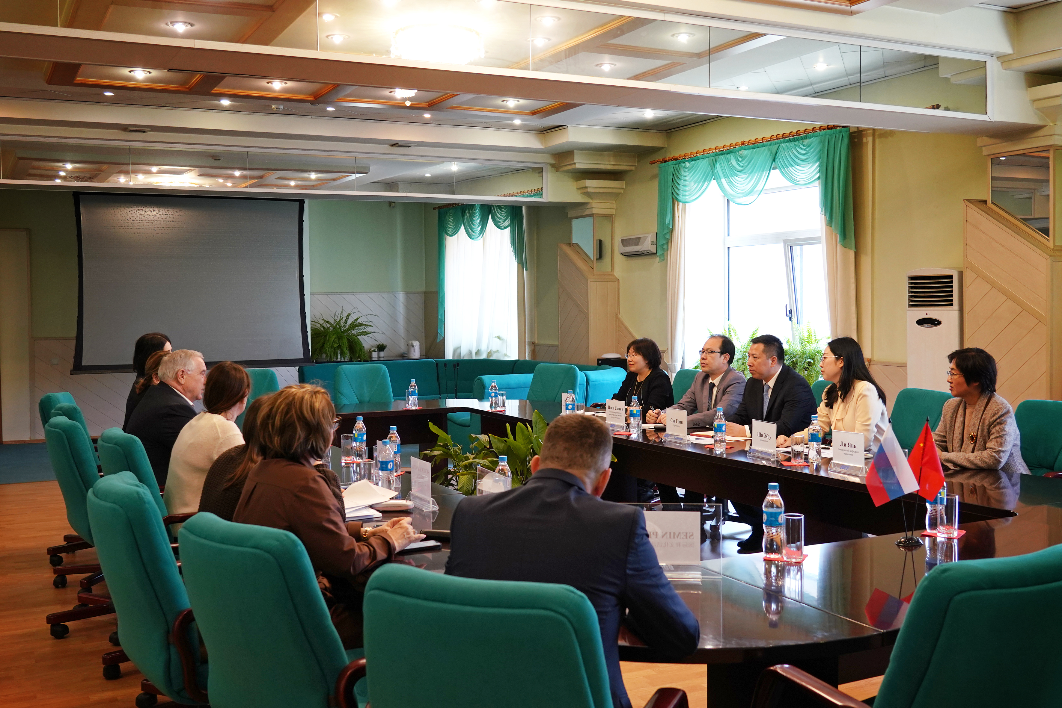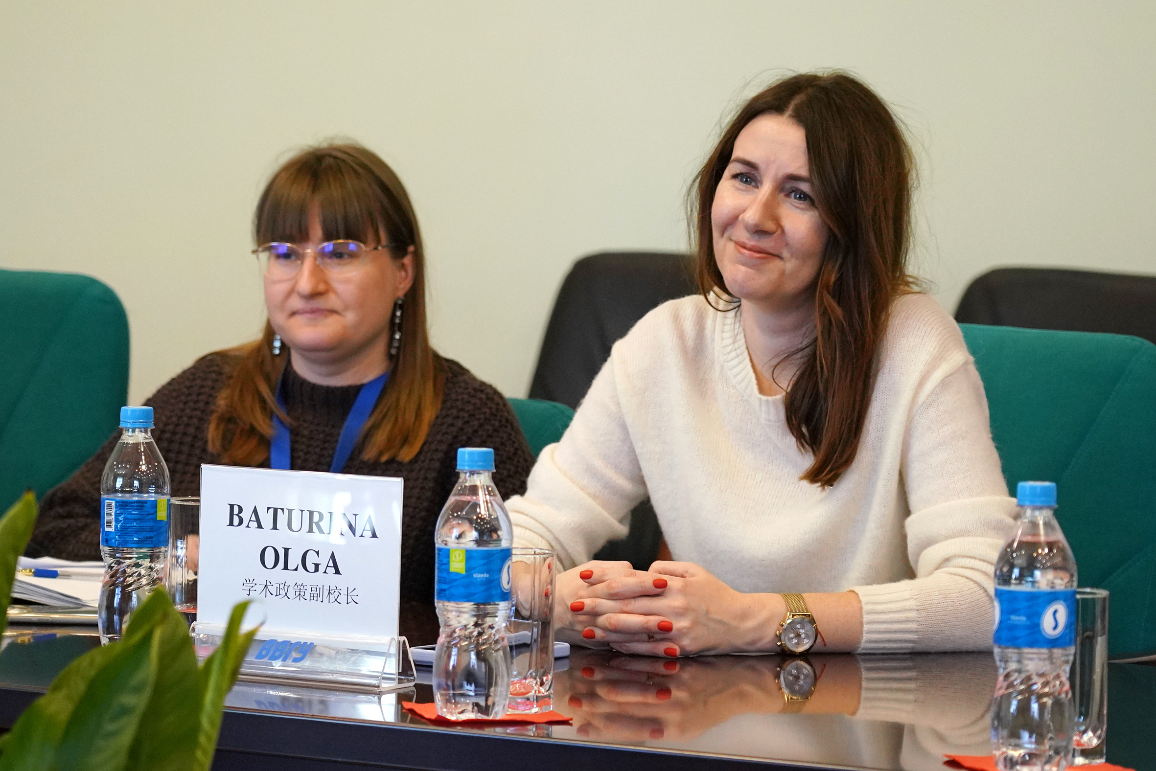 Со стороны гостей на встрече присутствовали проректор Сю Гоин, начальник управления международных связей и сотрудничества Цзин Сянян, заведующий кафедрой русского языка Ван Мяо, переводчик Ши Жоу.