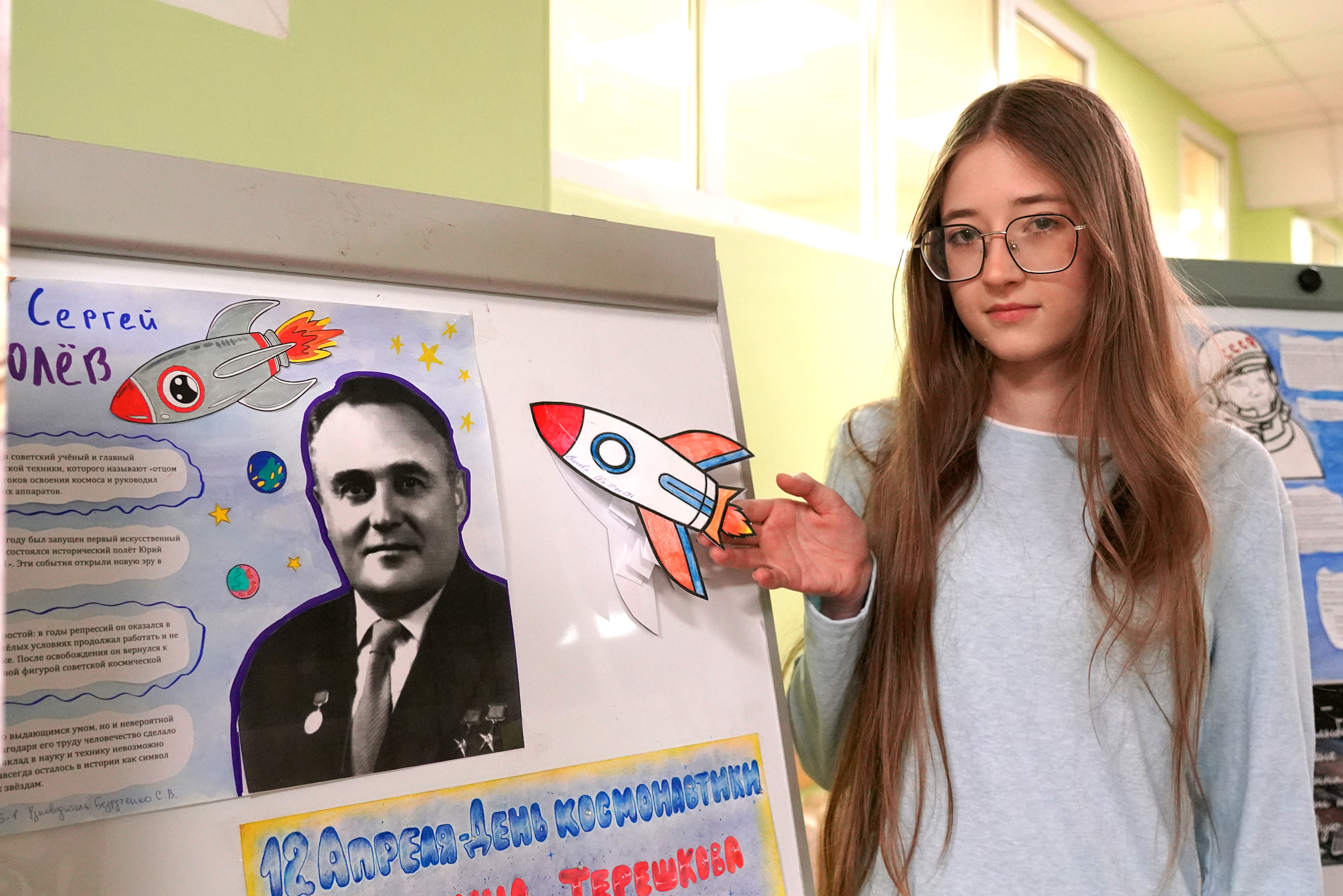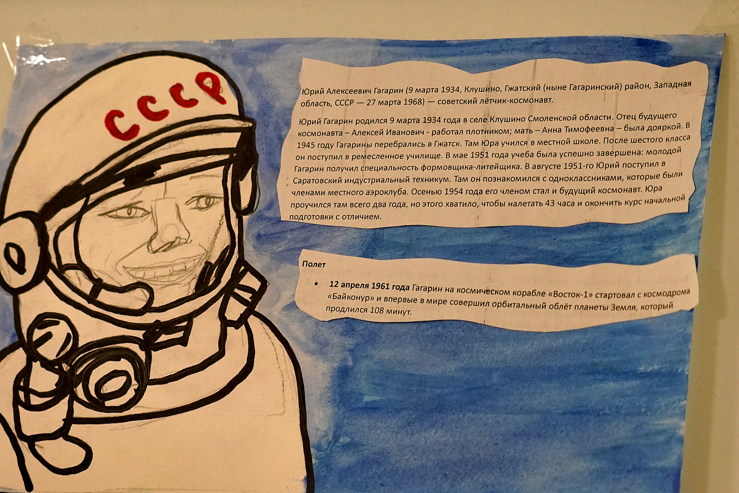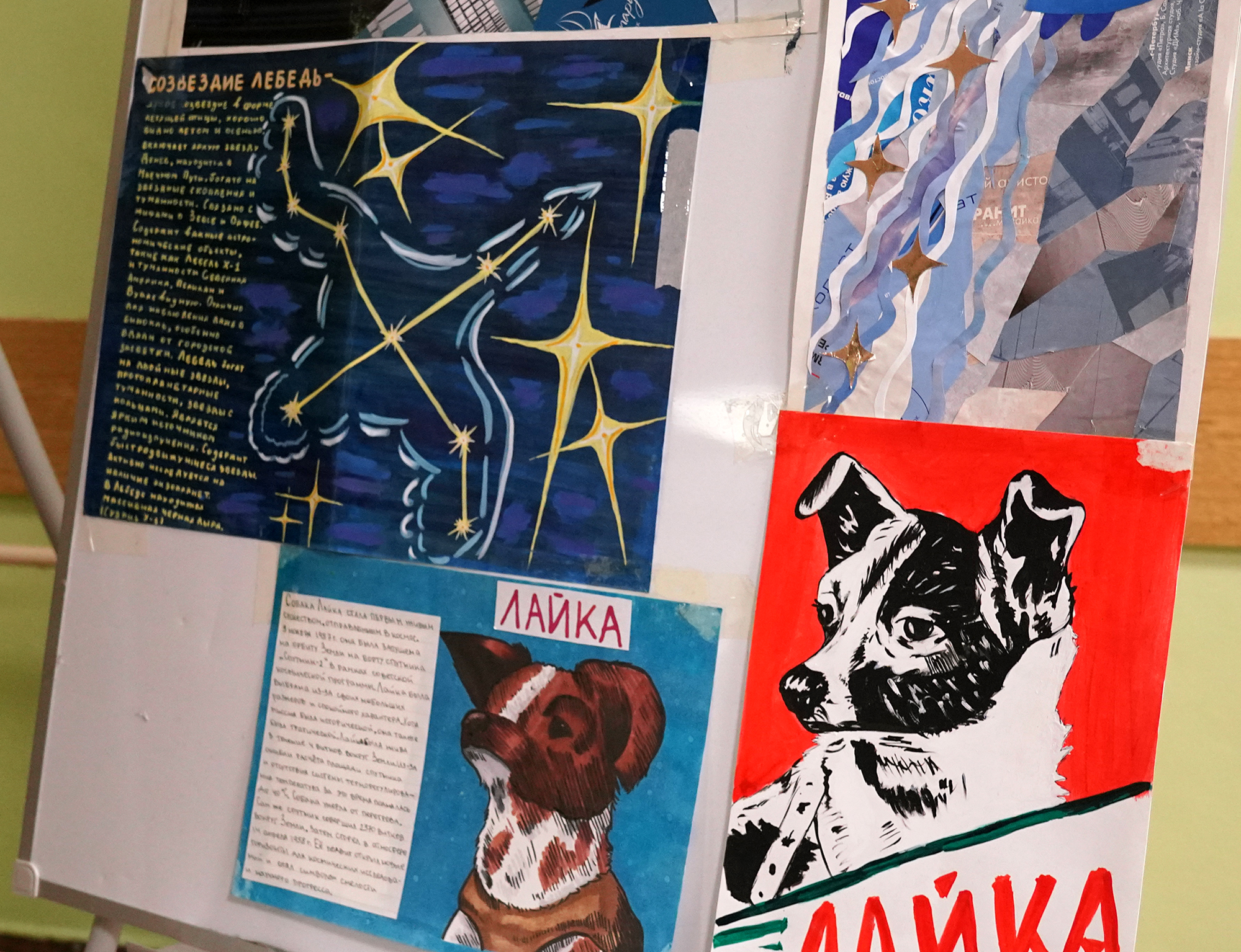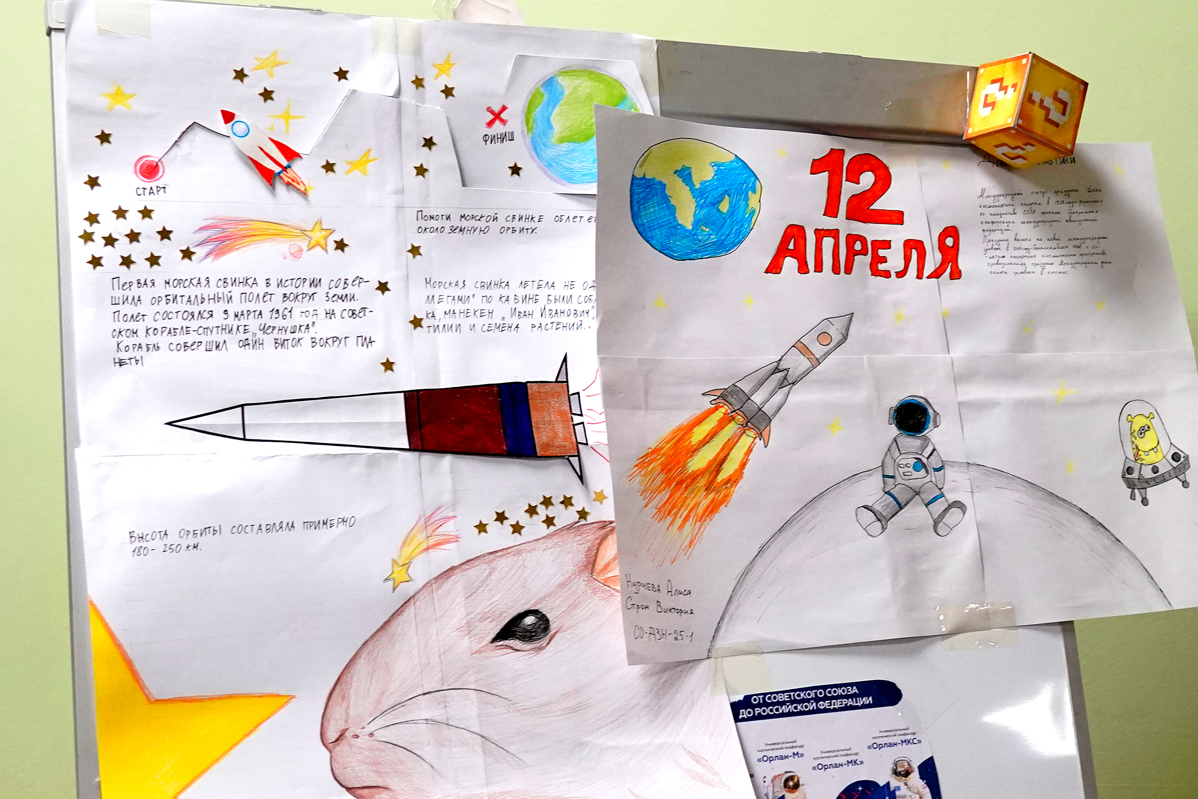 Отдельный стенд посвятили хронике космической эры: от спутника до современных экипажей МКС. В своих работах студенты рассказали, как космос изменил общество – науку, политику, повседневную жизнь простых людей.