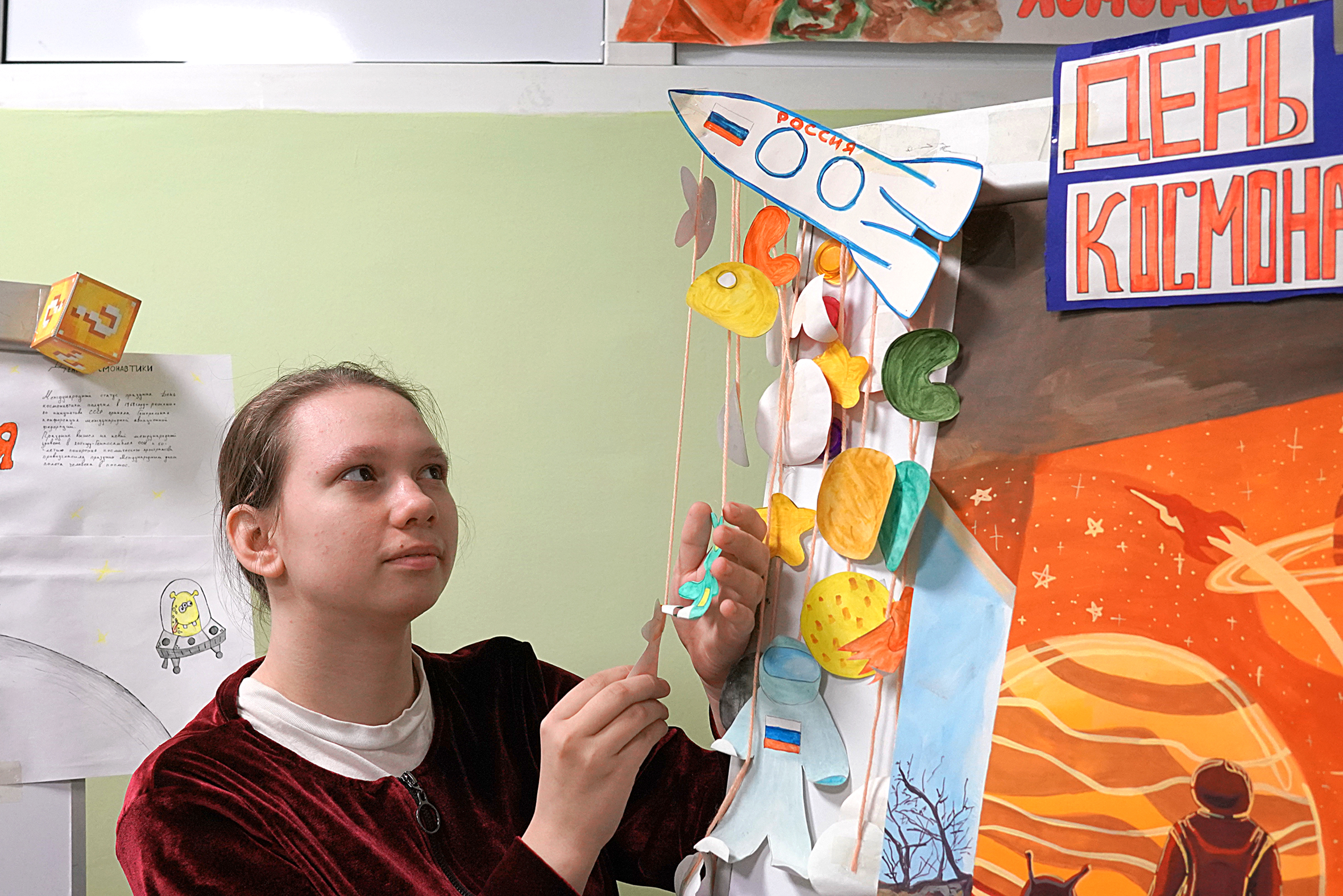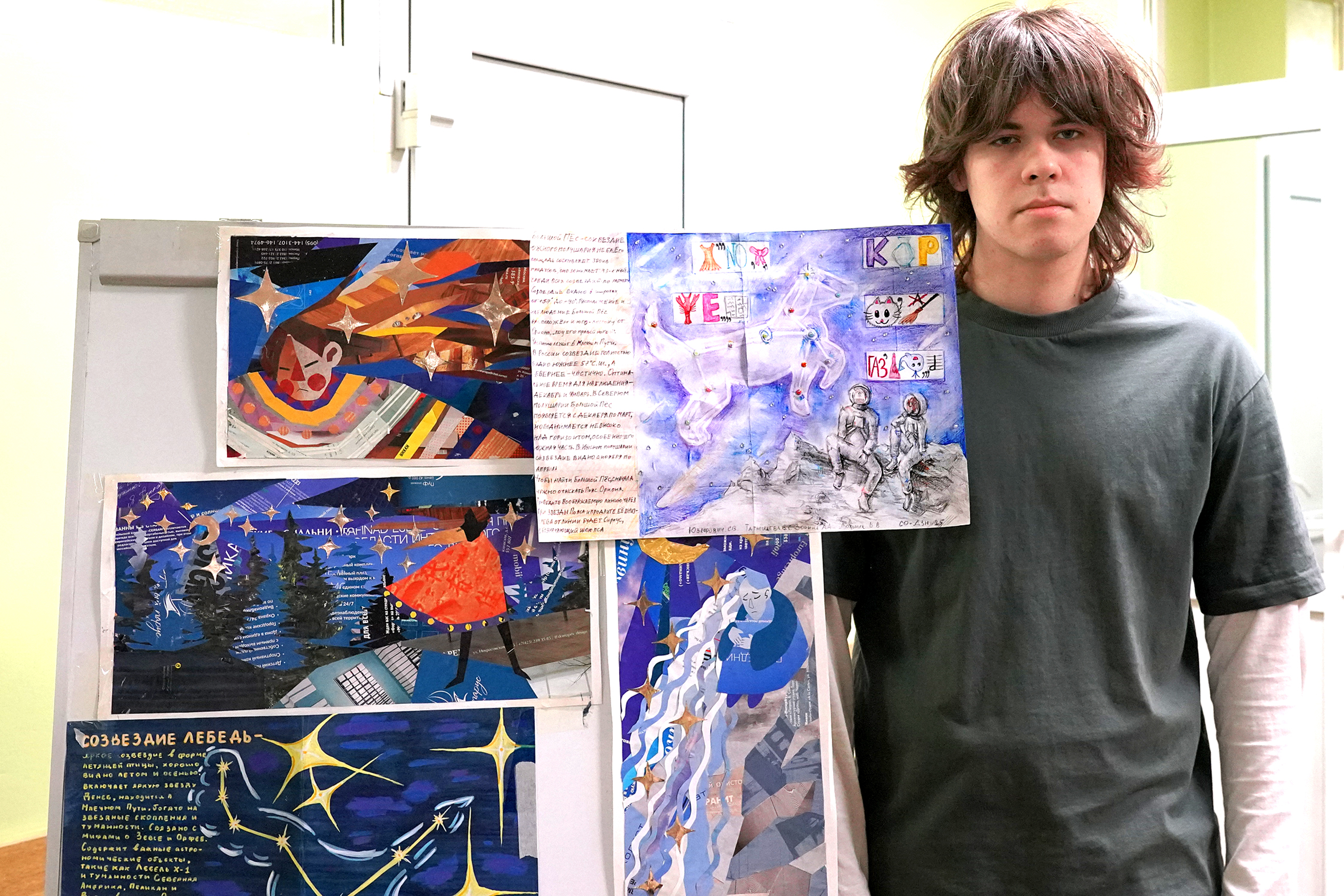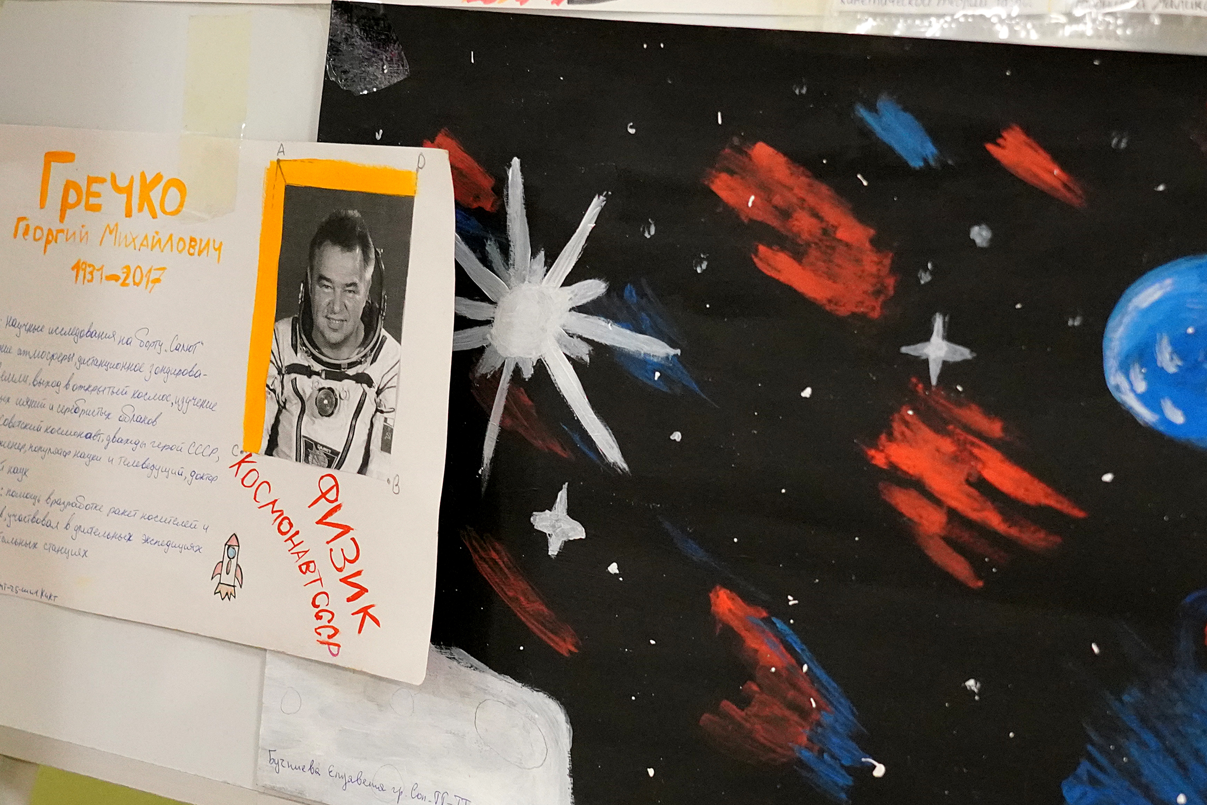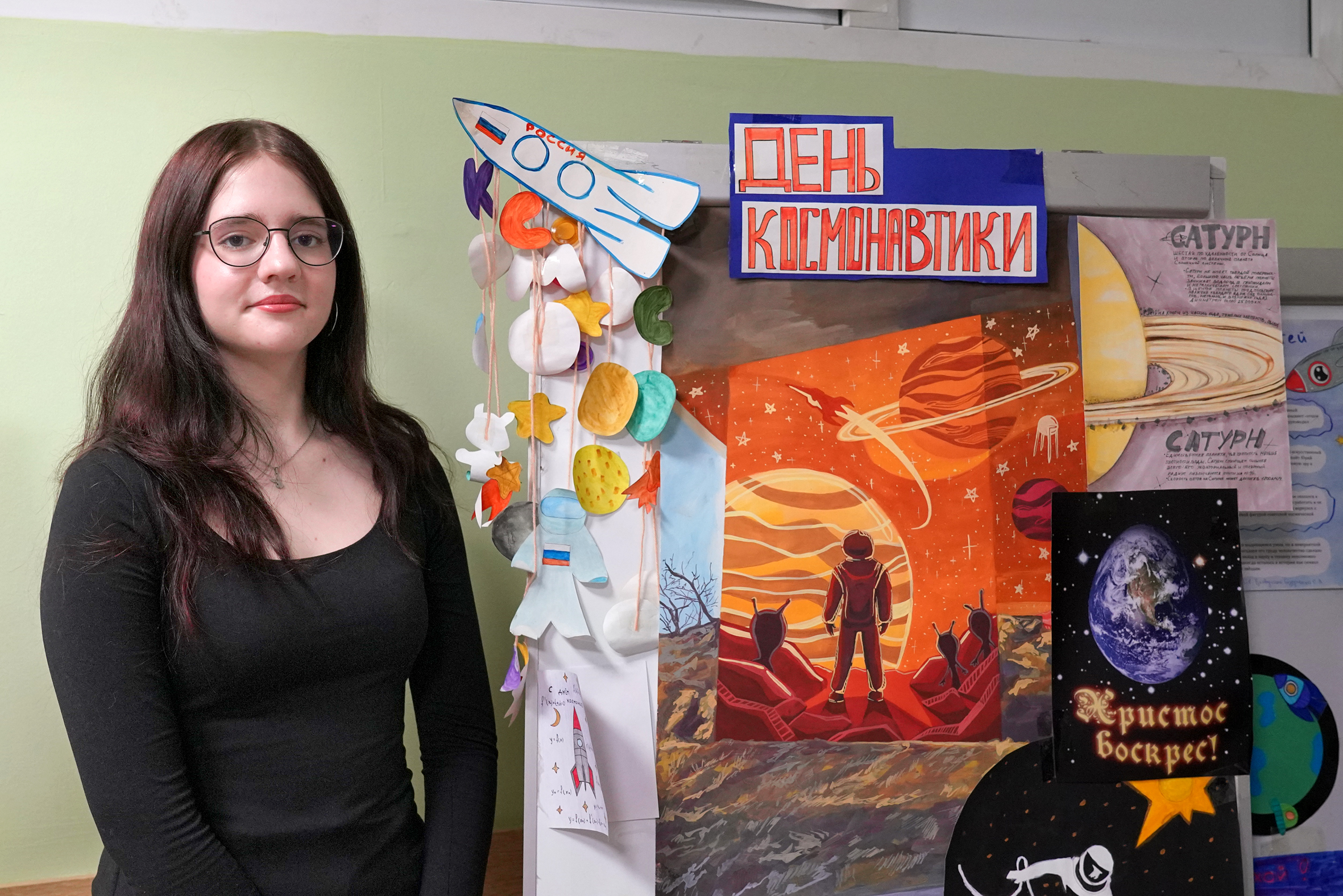Отдельный стенд посвятили хронике космической эры: от спутника до современных экипажей МКС. В своих работах студенты рассказали, как космос изменил общество – науку, политику, повседневную жизнь простых людей.