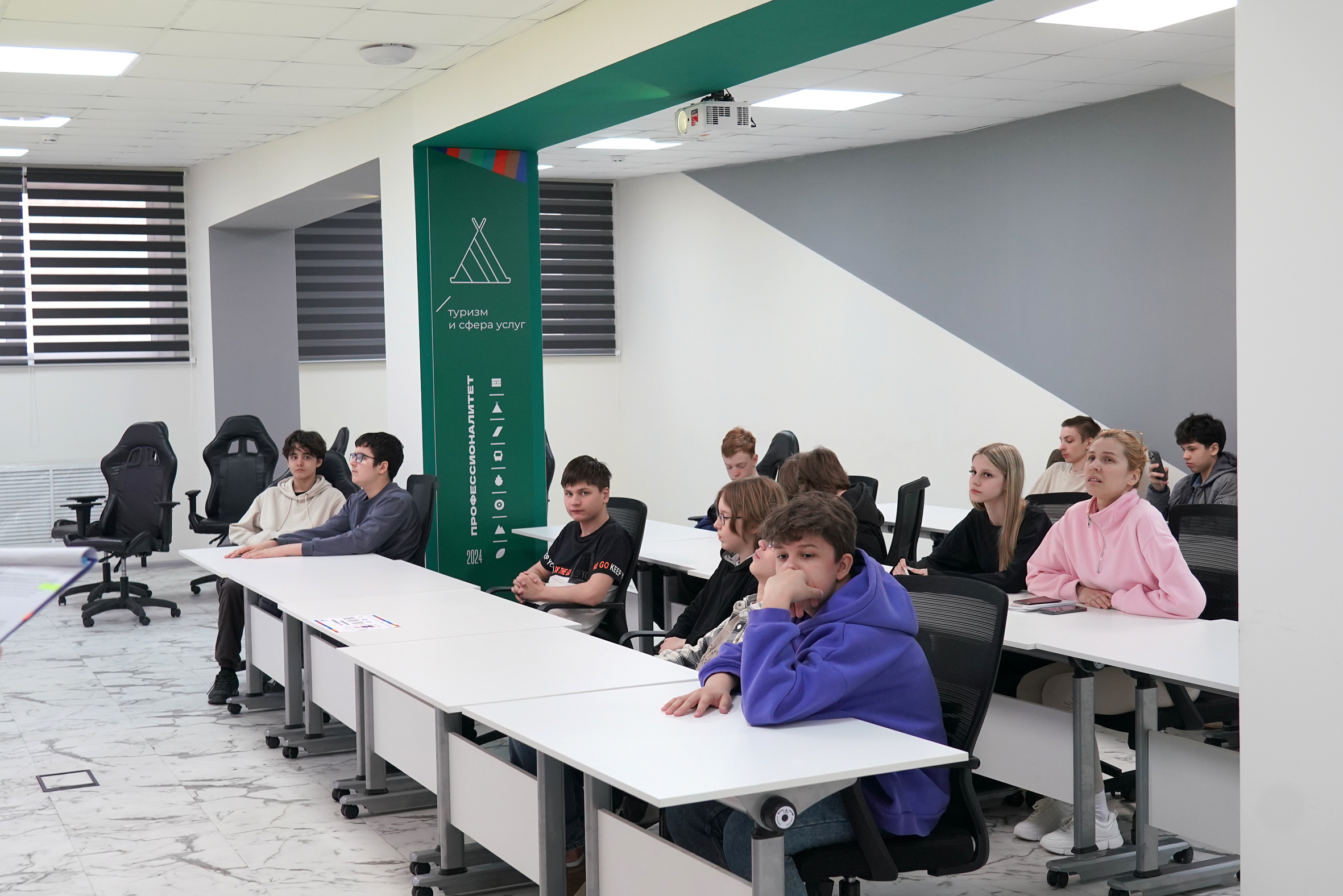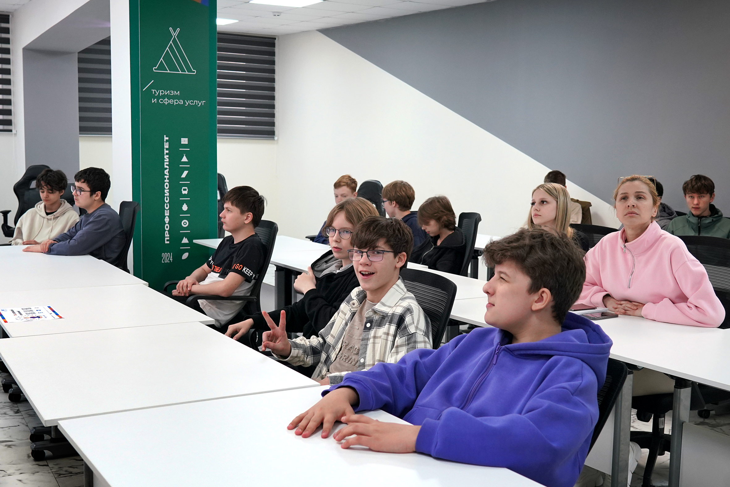 Для интересующихся специальностью «Туризм и гостеприимство» (Направленность: Гостиничные услуги) была организована профессиональная проба «Гостиничный переполох», где ребята смогли познакомиться со стандартами гостиничного обслуживания, изучили организационную структуру отеля и узнали о ключевых обязанностях сотрудников разных подразделений.