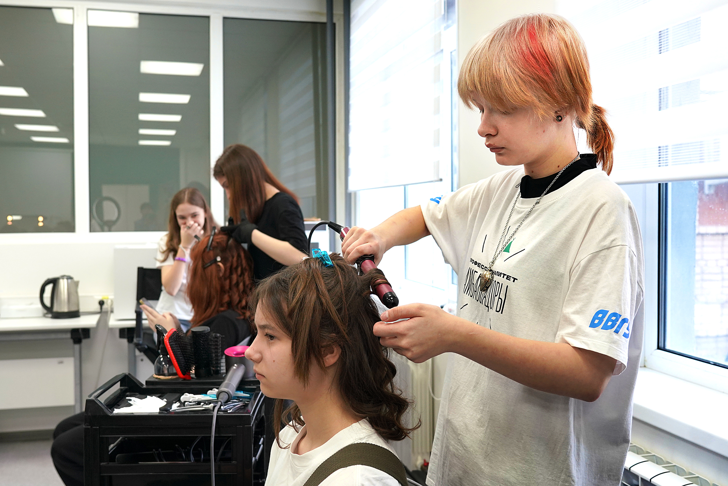 Среди девушек особой популярностью пользовались профессиональные пробы специальности «Технологии индустрии красоты» в рамках направлений «Парикмахерское искусство» и «Эстетическая косметология». Гости освоили основы макияжа, техники массажа, причёсок и укладок. Под руководством студентов ВВГУ участницы профессиональных проб могли собрать себе вечерний образ, проконсультироваться в выборе уходовых и косметических средств.