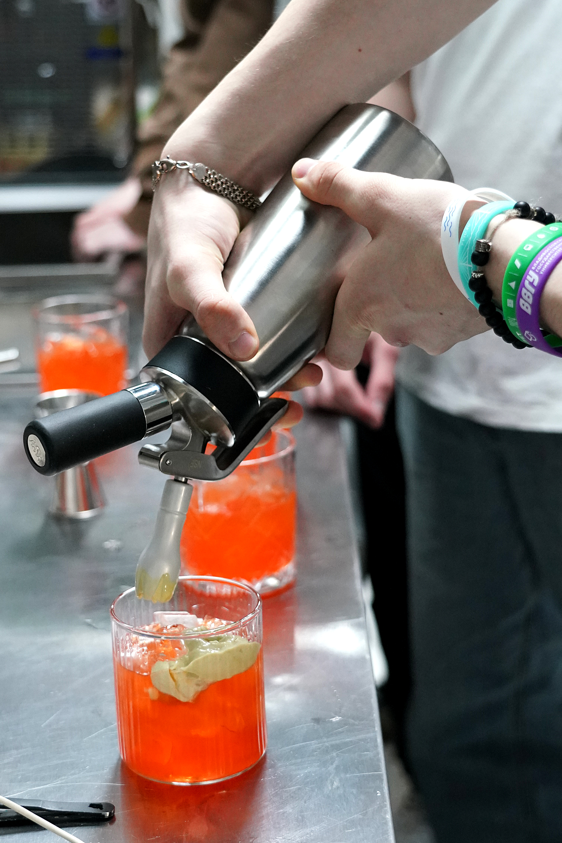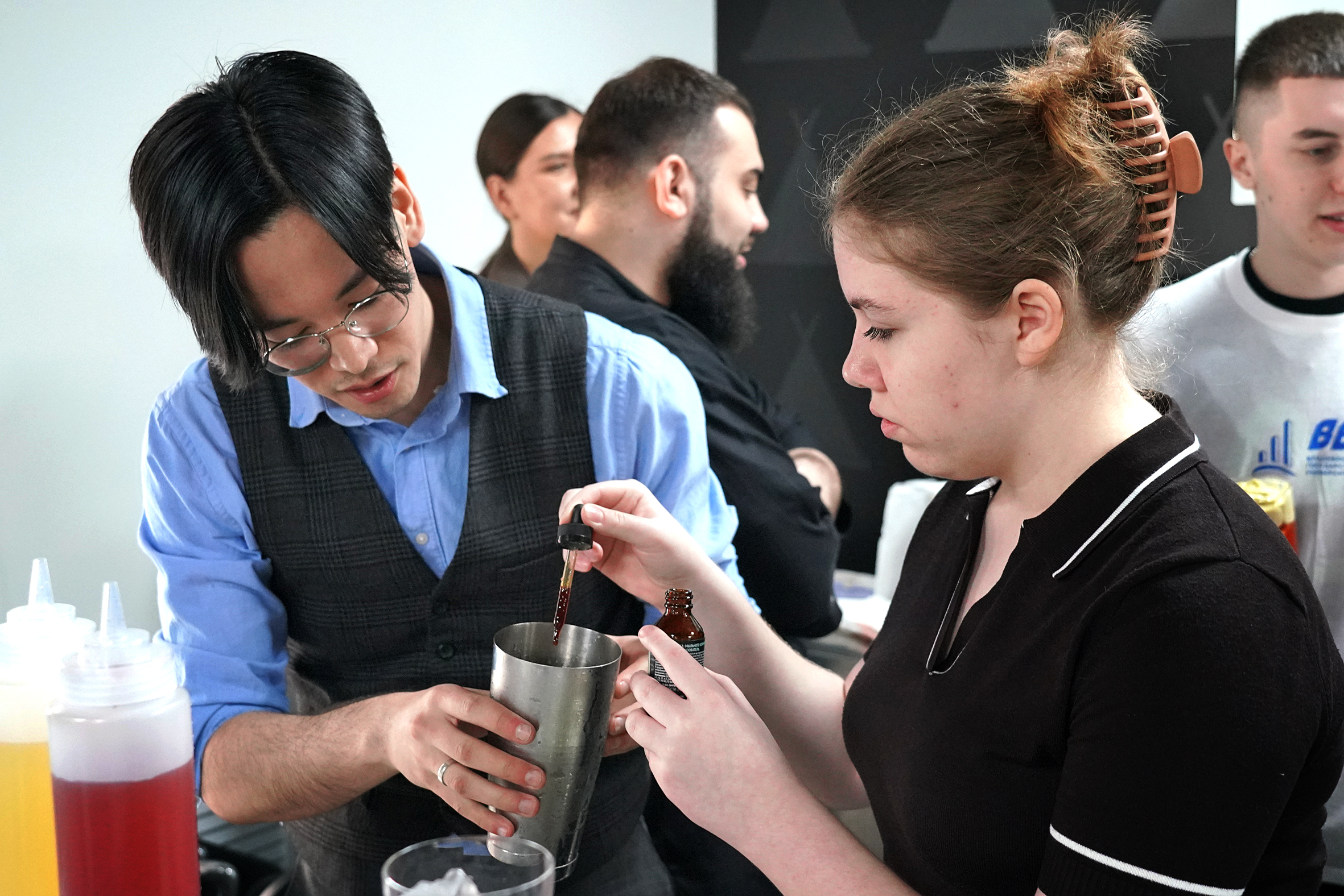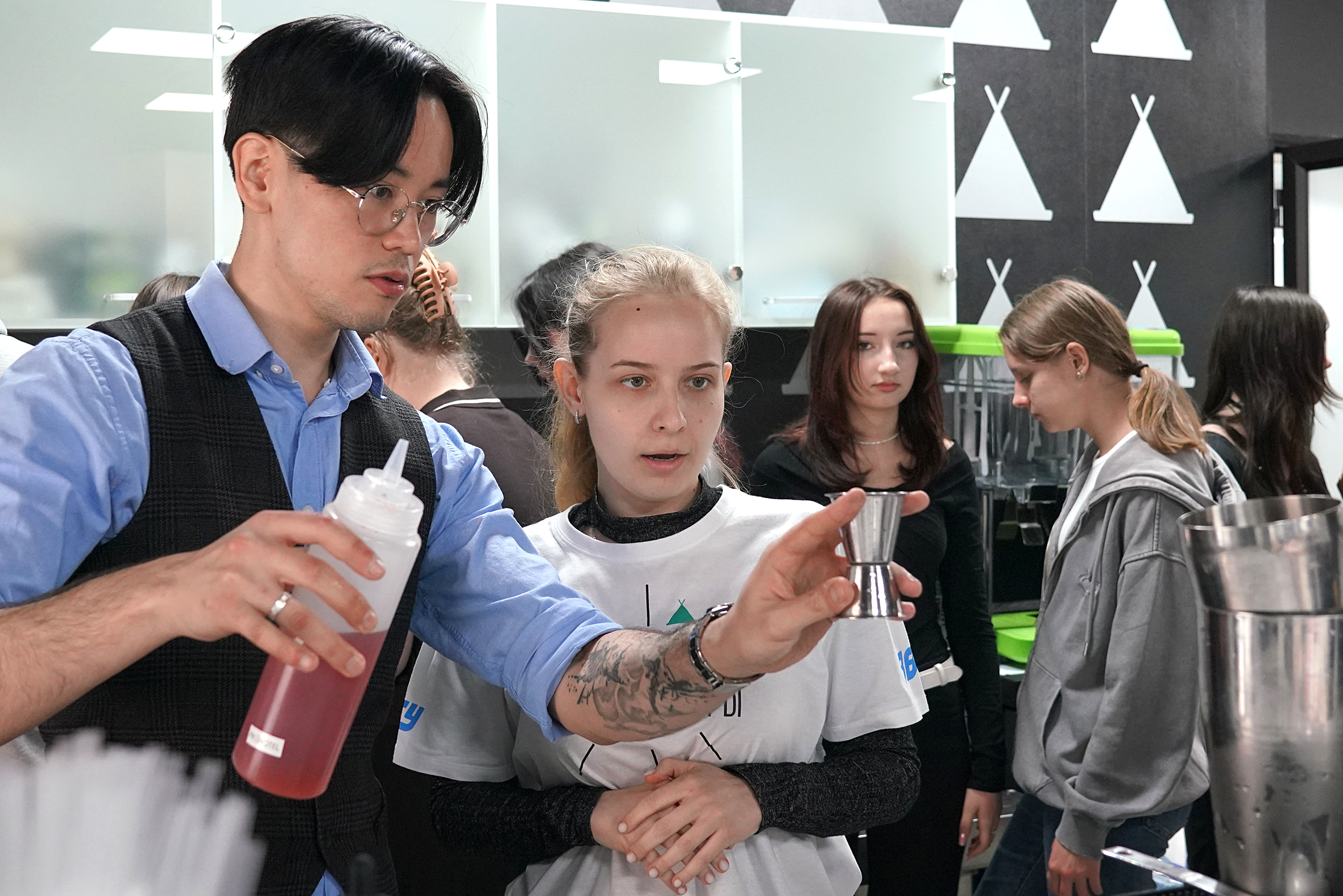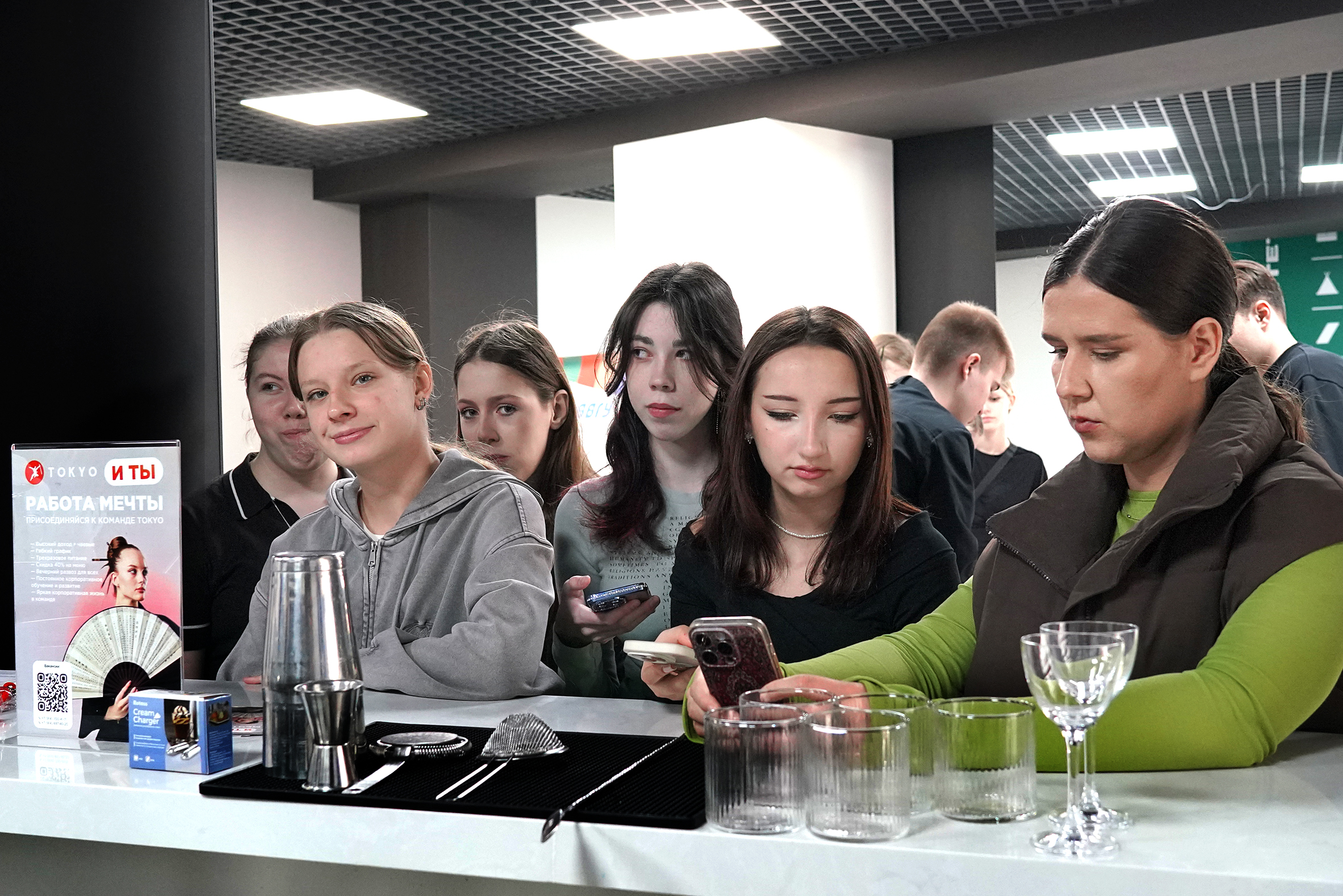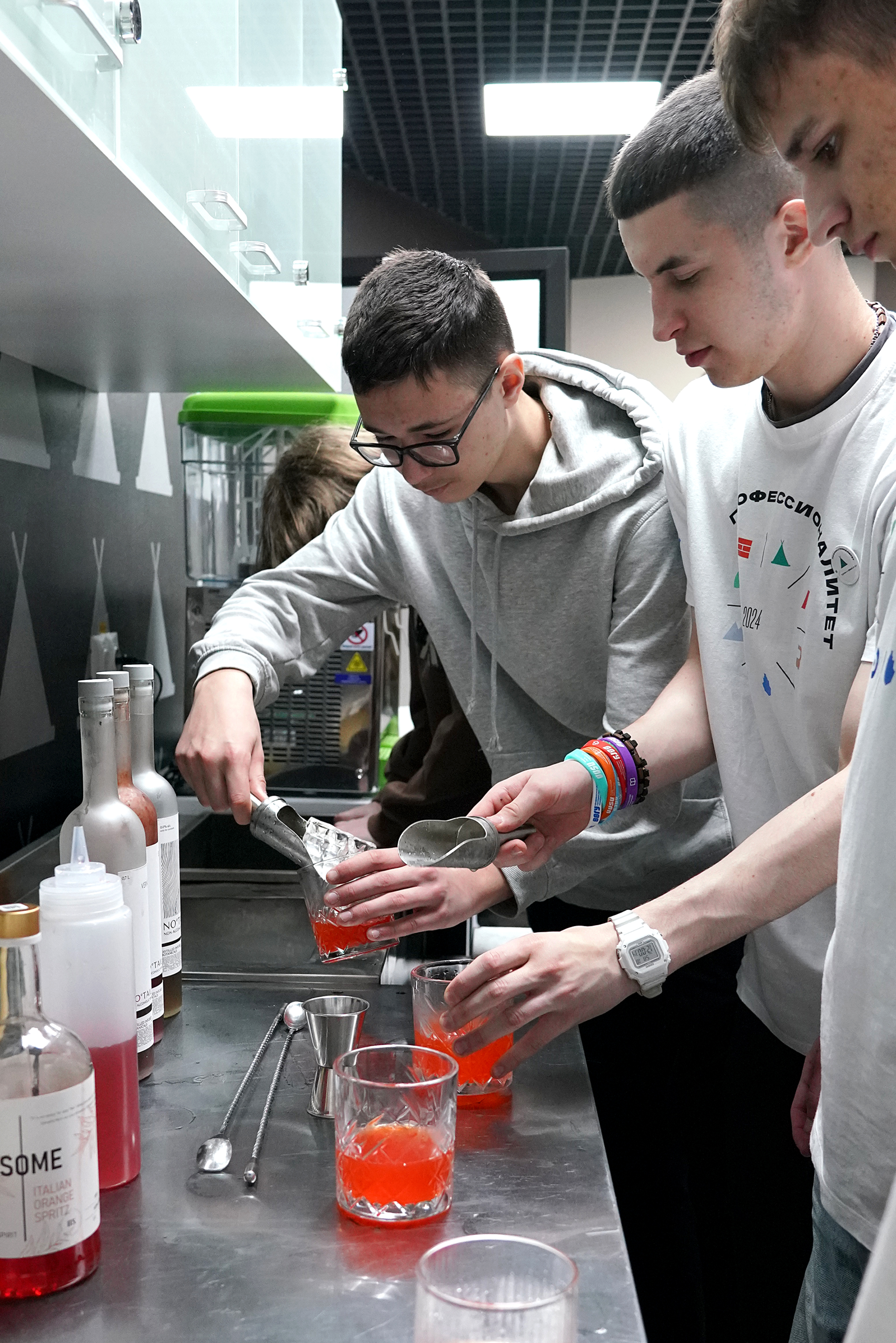 Так, профессиональная проба по профессии «Официант, бармен» от сети ресторанов японской кухни «Токио» свела на площадке ребят, заинтересованных во флейринге (барном искусстве). Школьники освоили секреты приготовления популярных и авторских безалкогольных коктейлей, а на десерт – приготовили собственный напиток своими руками.