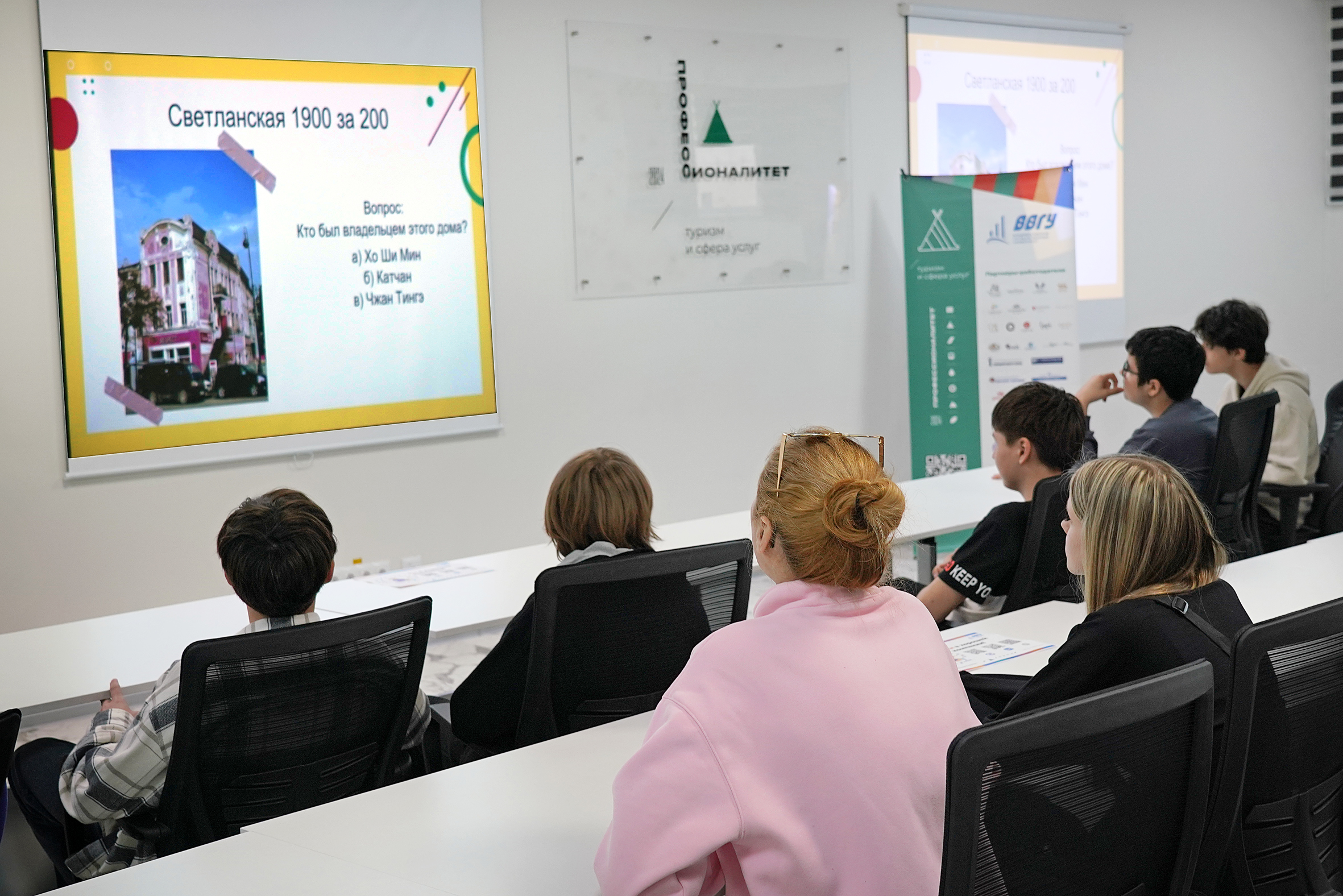 Единый день открытых дверей завершился увлекательными экскурсиями на площадки партнеров-работодателей: сеть грузинских ресторанов «Супра», апарт‑отель RODINA RESIDENCES VLADIVOSTOK, гостиница «Azimut Сити Отель Владивосток», транспортно‑логистическая компания TFL. Школьники смогли пообщаться с опытными профессионалами и вдохновиться на дальнейшее получение качественного образования в сфере туризма и услуг.