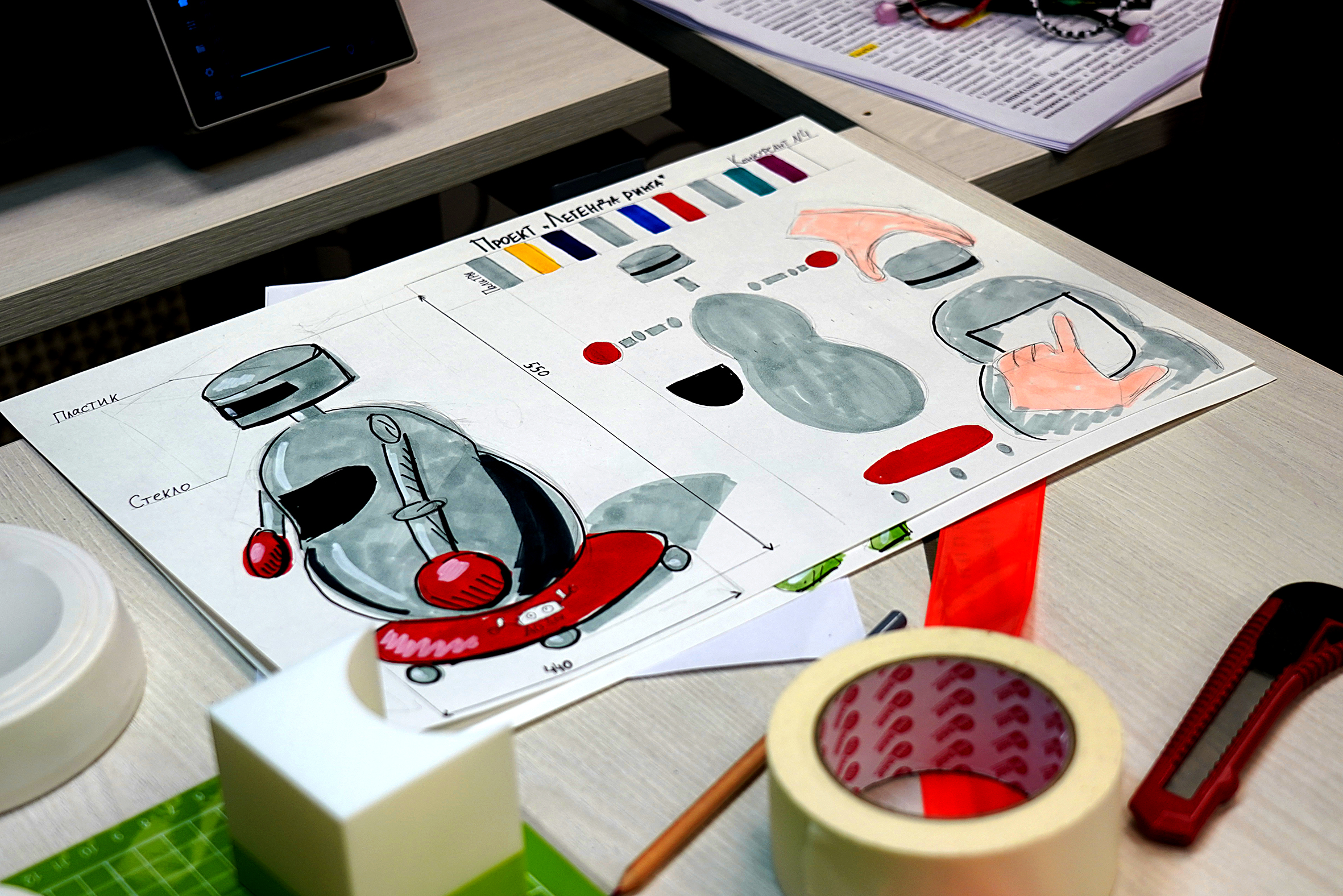 Юниоры работали над эскизами, портретом потребителя, стайлбордами и досками референсов, затем переходили к гибридному скетчингу и 3D-моделированию. Финалом становилась печать прототипа, его постобработка и презентация проекта перед заказчиком.