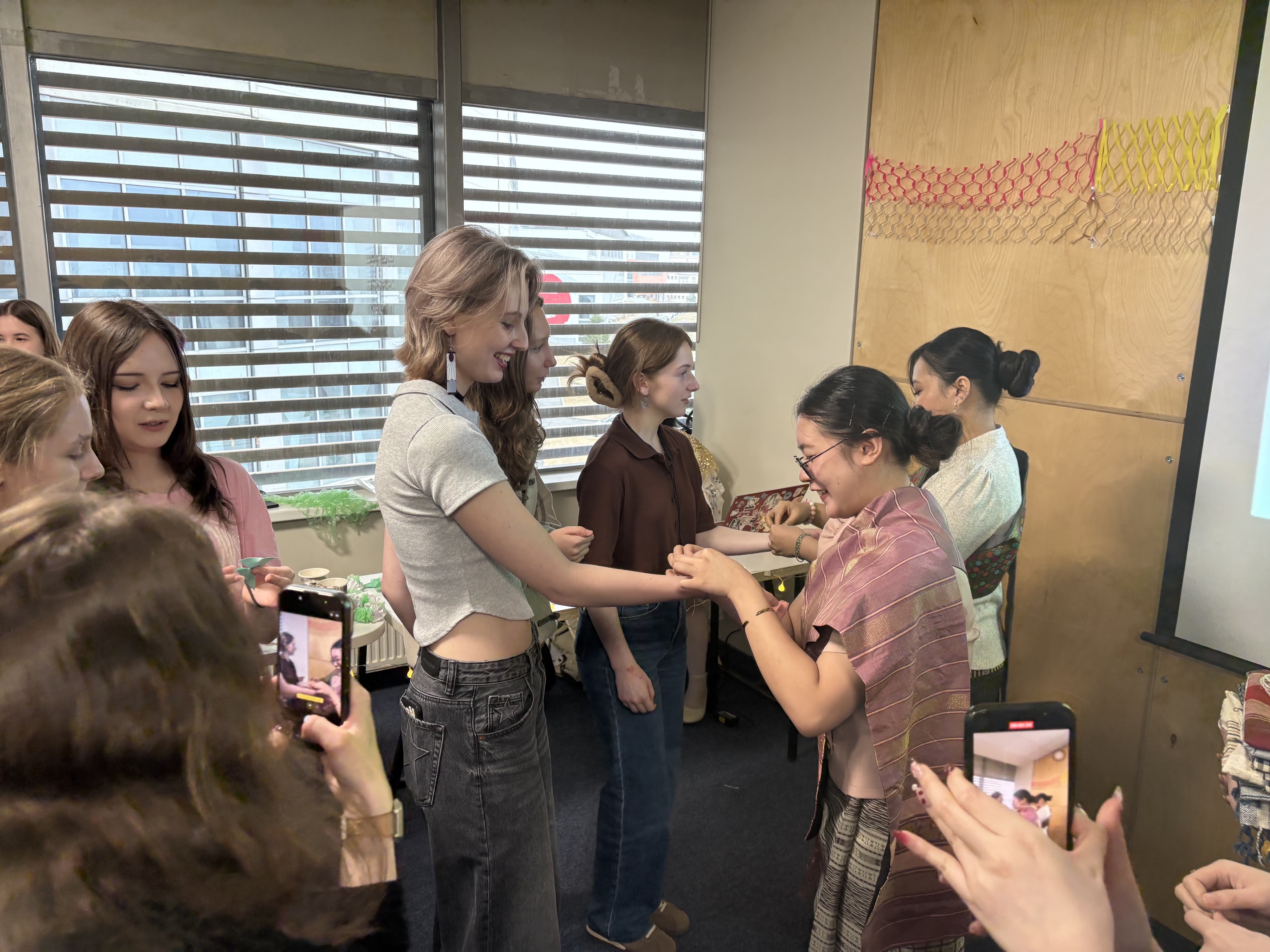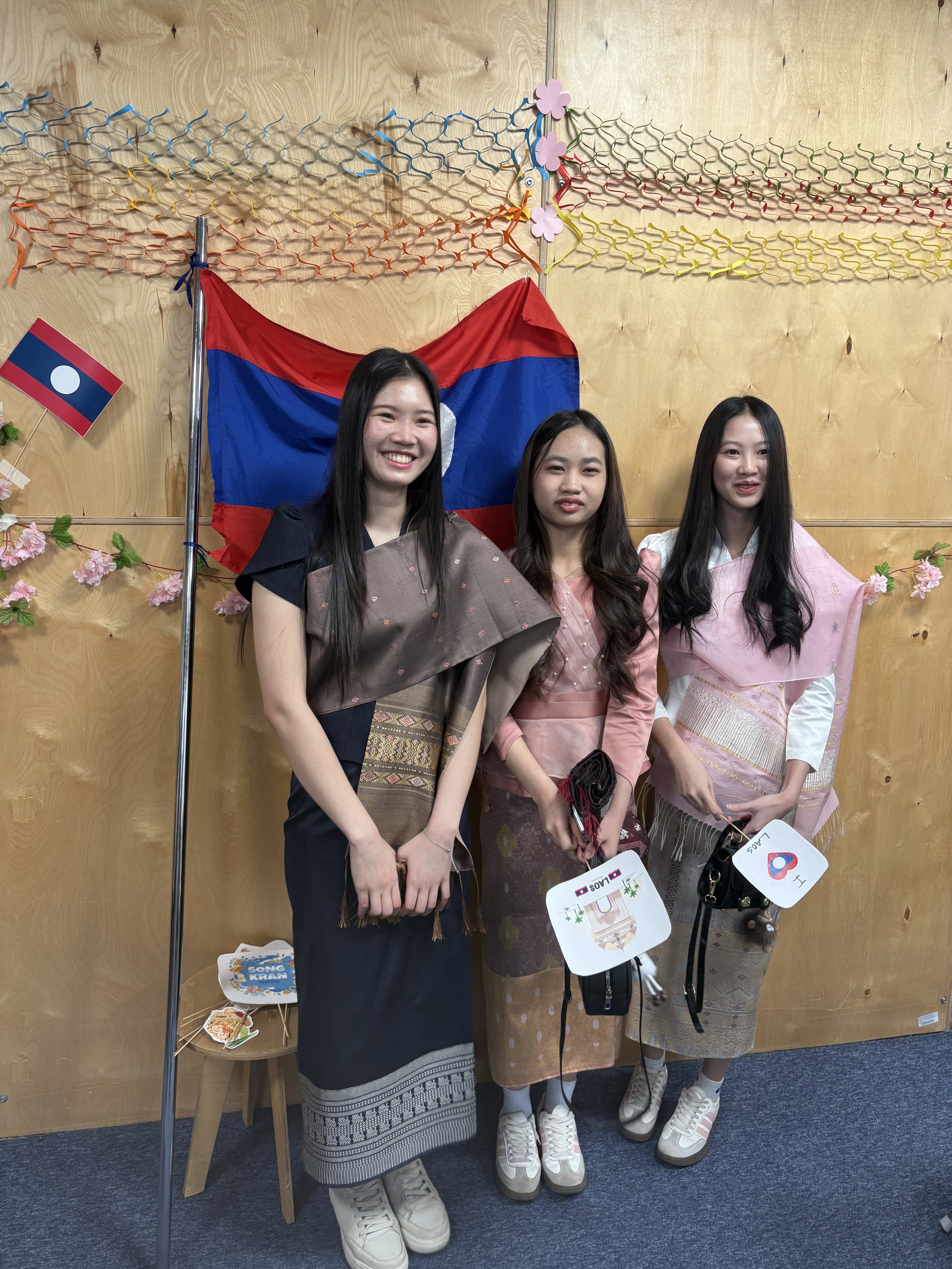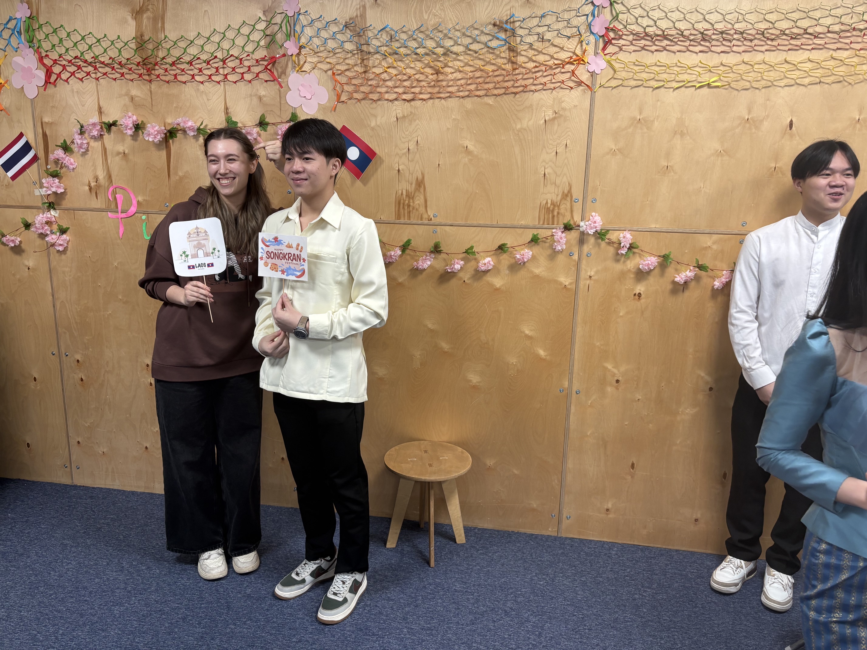 Участники праздника могли своими руками сделать новогоднюю открытку и написать на тайском и лаосском языках праздничные пожелания, выучить элементы традиционного лаосского танца, а также сделать памятное фото на стенде, украшенном цветами.