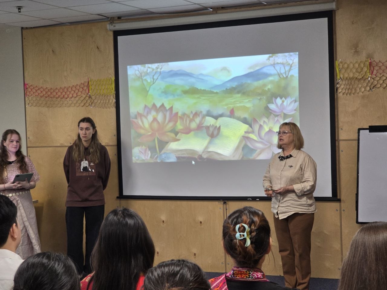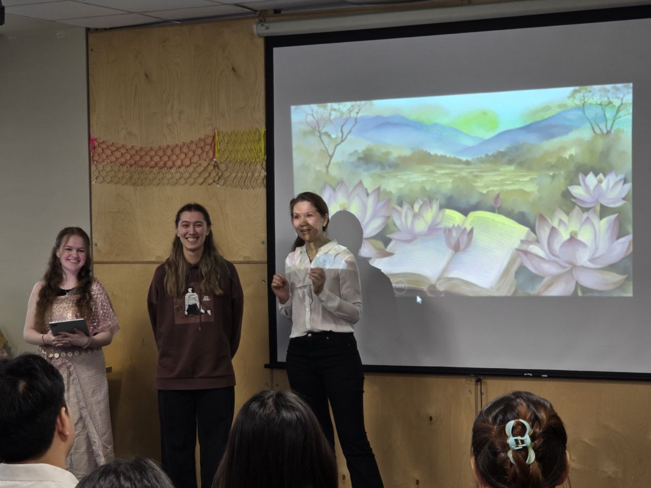 С приветственными речами перед гостями выступили Диана Владимирова, заведующая кафедрой Тихоокеанской Азии Восточного института ДВФУ, а также Антонина Голуб, старший преподаватель кафедры Тихоокеанской Азии ВИ ДВФУ, которые подчеркнули важность партнёрства между университетами.