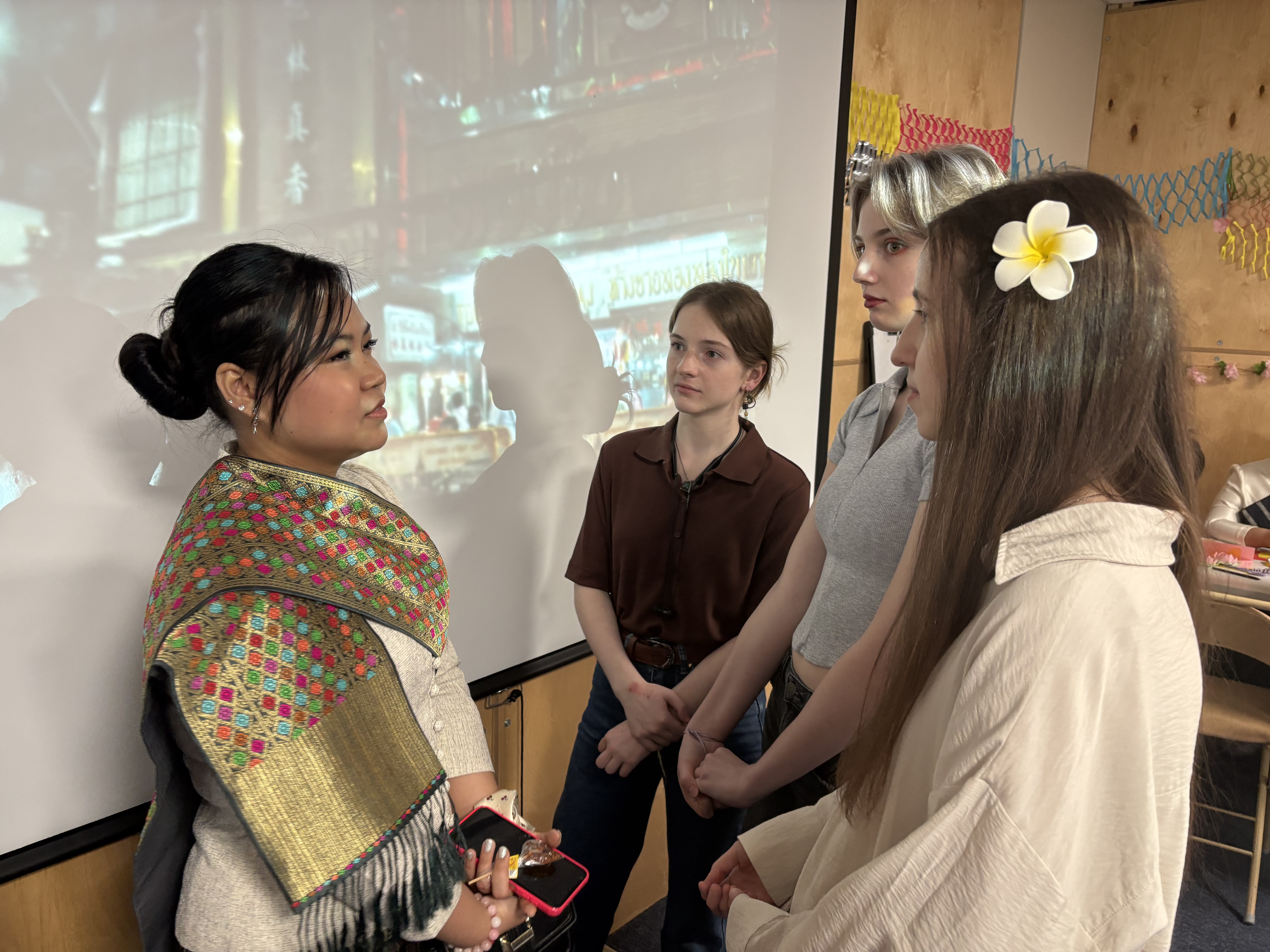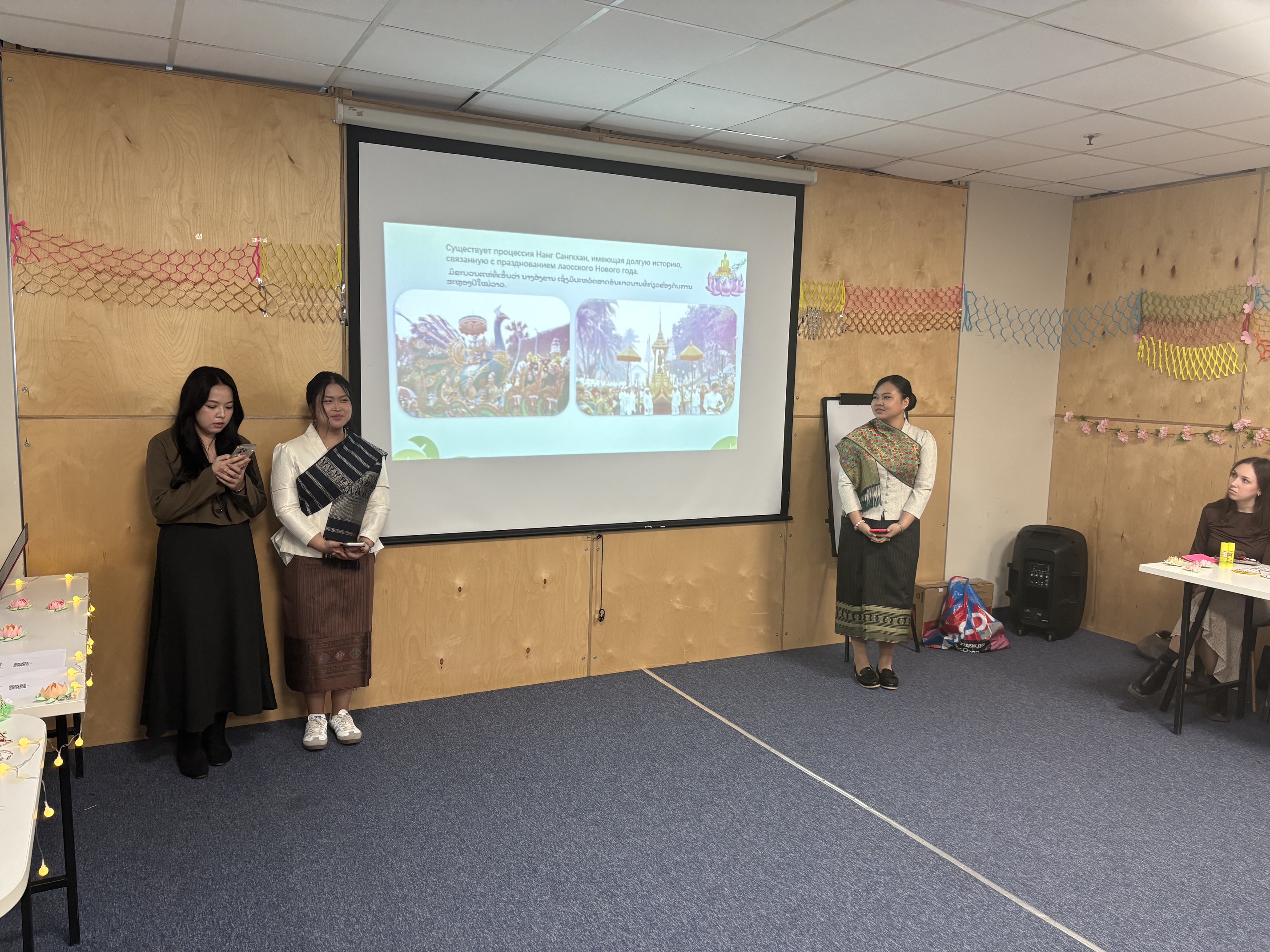 Российские студенты подготовили презентацию и викторину об истории и традициях празднования Нового года, где каждый желающий мог ответить на вопросы, касающиеся культуры Таиланда и Лаоса.