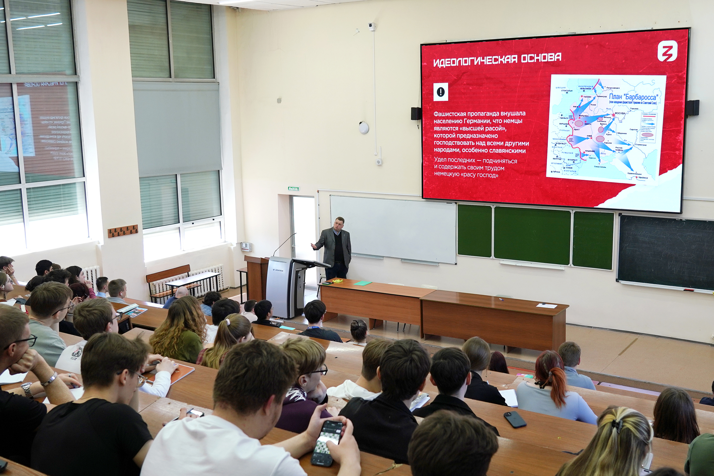 Завершил первую неделю лекций Андрей Афонин, старший преподаватель Высшей школы кино и телевидения. Лектор познакомил студентов с соратником японского милитаризма на западном фронте – немецким фашизмом. За 1418 дней Великой Отечественной войны её жертвами стали более 26 миллионов советских граждан.