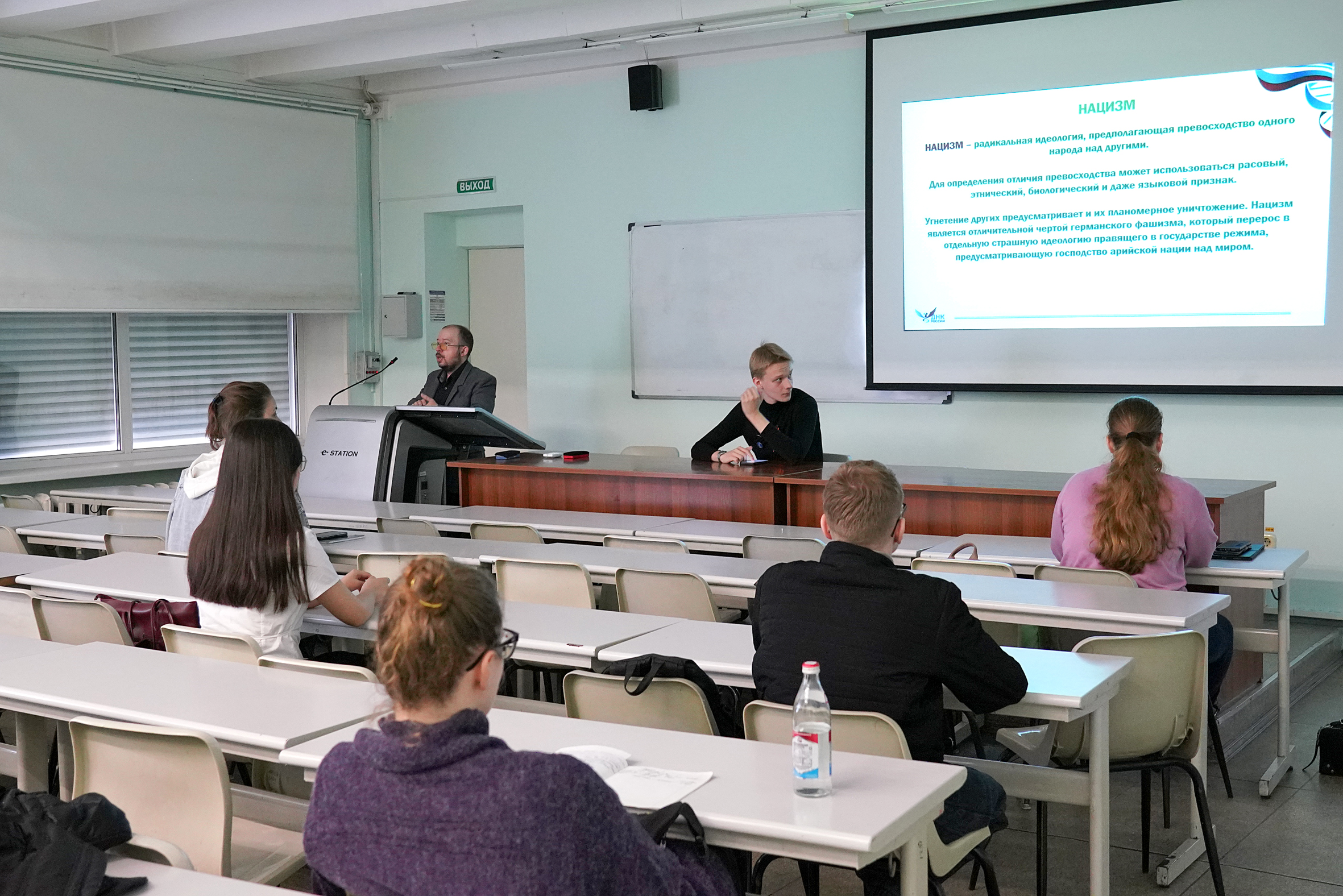 Лектор Павел Калашников, преподаватель колледжа информационных и креативных технологий, познакомил слушателей с историей учреждения памятной даты. Студенты узнали о том, что из себя представляет нацизм в современном понимании, почему эта идеология стремится к геноциду, а также в советское время боролись с её пособниками.