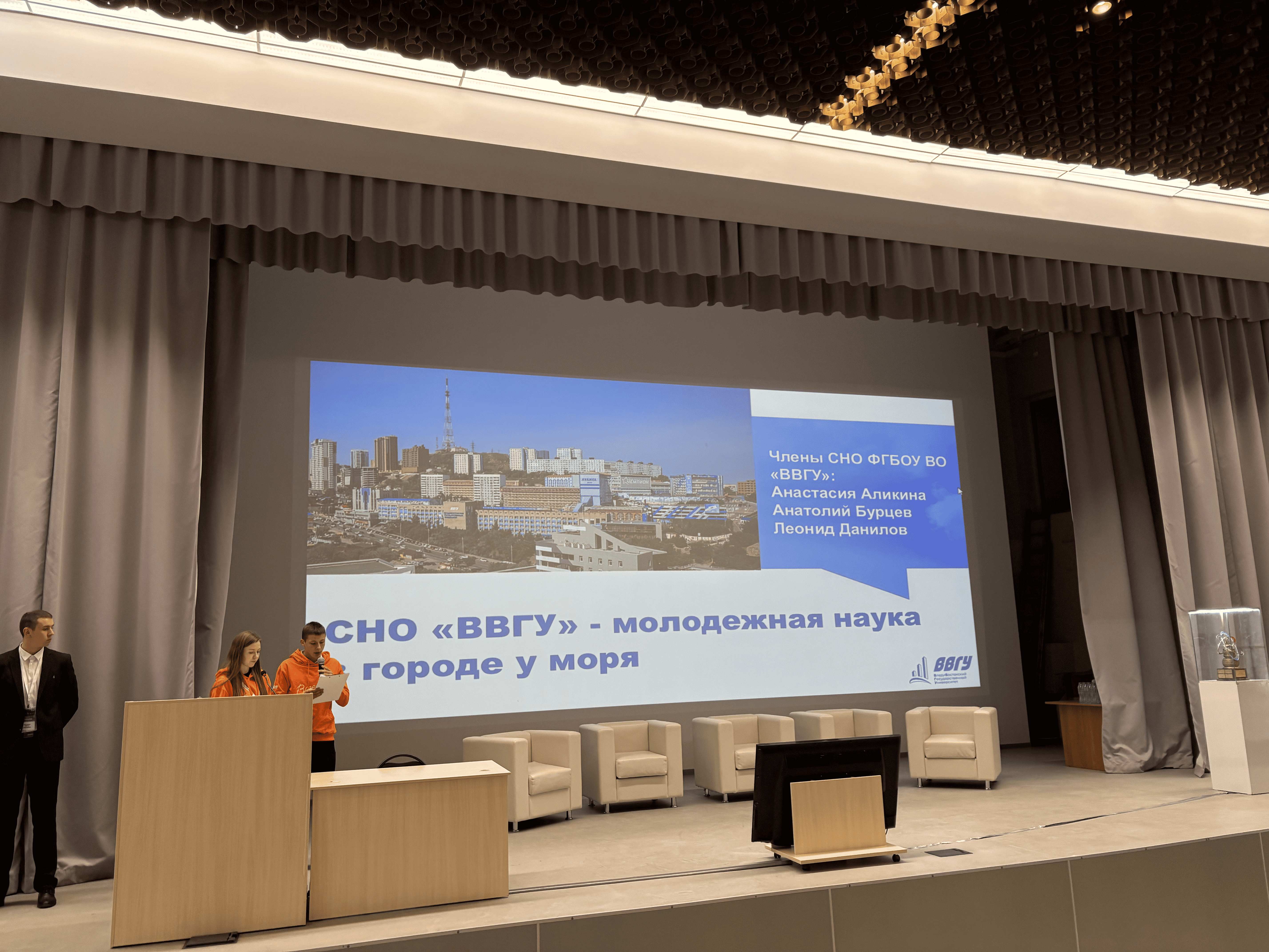 Владивостокский государственный университет стал единственным дальневосточным вузом, прошедшим в финал конкурса, среди 14 вузов из Москвы, Санкт-Петербурга, Калининграда, Тюмени, Иркутска, Саратова и Альметьевска. Делегация СНО ВВГУ в составе студентов Инженерной школы Анастасии Аликиной и Леонида Данилова представила университет и по итогам финала была удостоена звания лауреата конкурса.