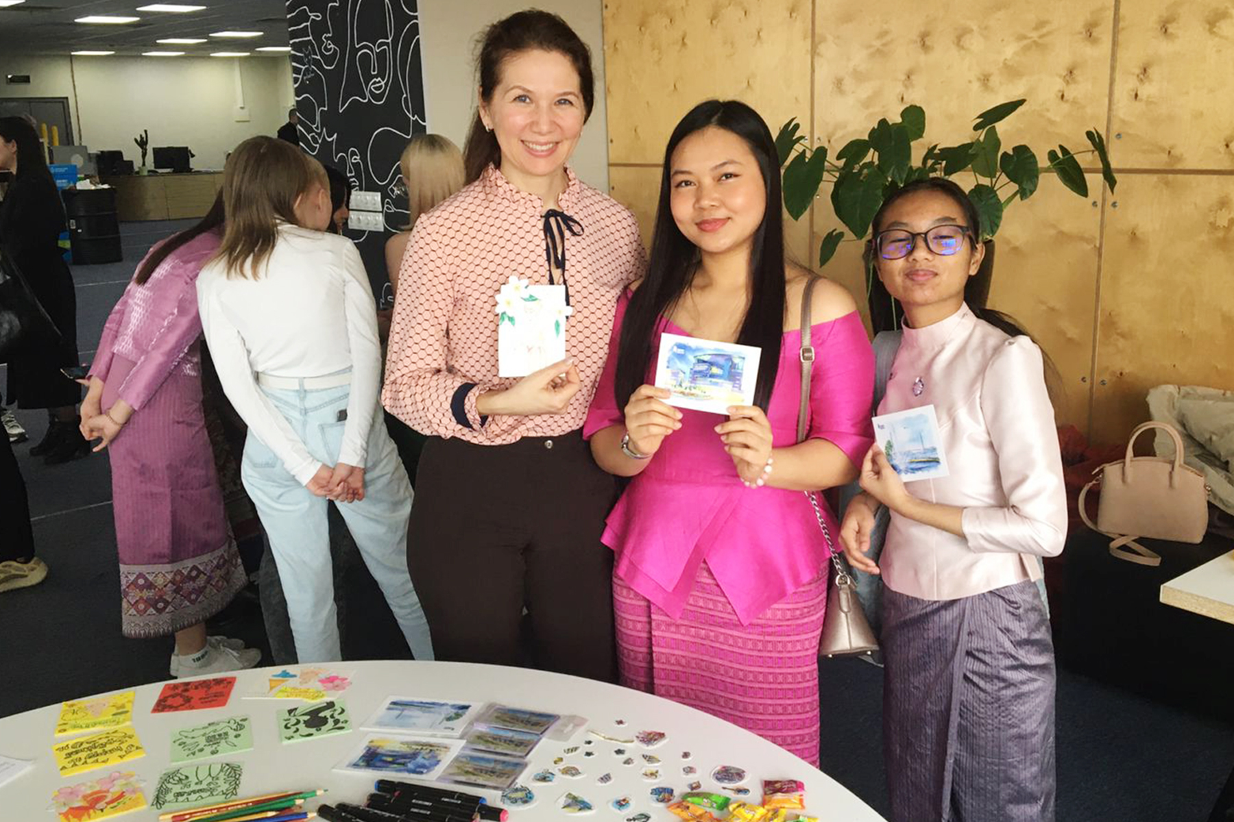 Организаторы подготовили для студентов несколько тематических станций, на которых ребятам рисовали на руках символы Таиланда или Лаоса, предлагали ответить на вопросы викторины, которые были связаны с культурой стран, помогали изготовить новогодние открытки.