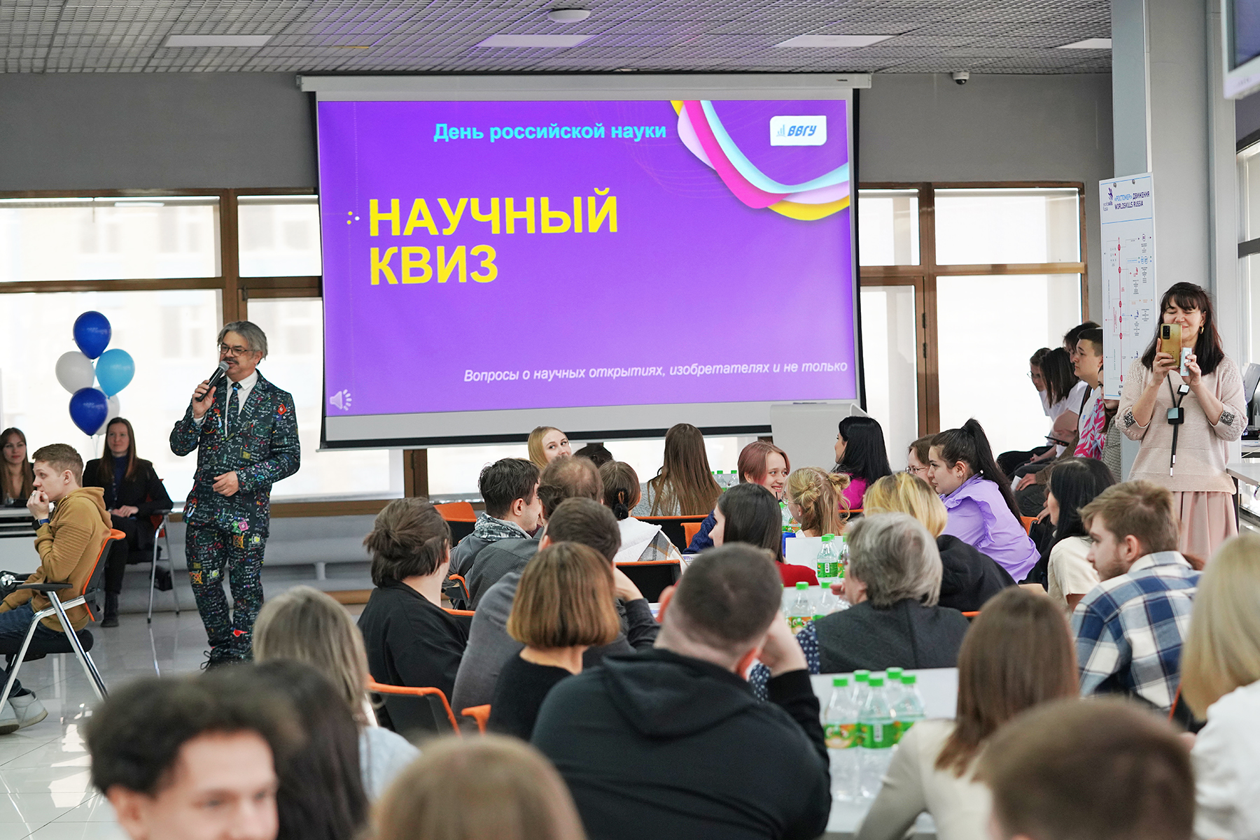 Проверить свою эрудицию студенты и сотрудники ВВГУ смогли в научном квизе. Игра состояла из разминки и пяти раундов. Участникам предстояло вспомнить авторов изобретений, разгадать ребусы, вспомнить научные открытия в кинематографе и даже по фрагменту фото попытаться узнать ученого ВВГУ.