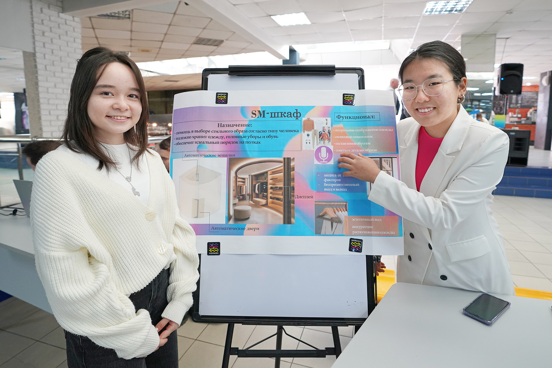 - Наш проект — это smart-шкаф. Мы полностью модернизировали привычный для всех предмет мебели. Теперь у него есть дисплей, автоматические двери и вешалки. Дисплей отображает, какая одежда висит у вас в шкафу, а еще сканирует вас и по вашим предпочтениям, параметрам и модным тенденциям составляет образ, - отметила студентка Международного института окружающей среды и туризма Аделия Самудинова.