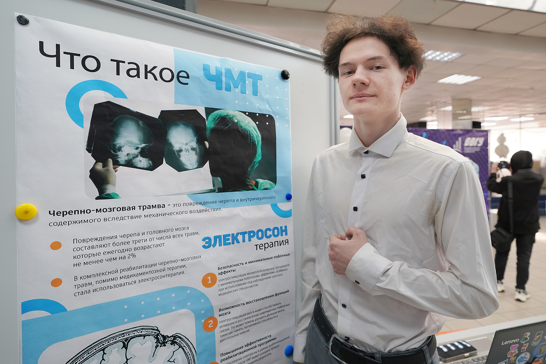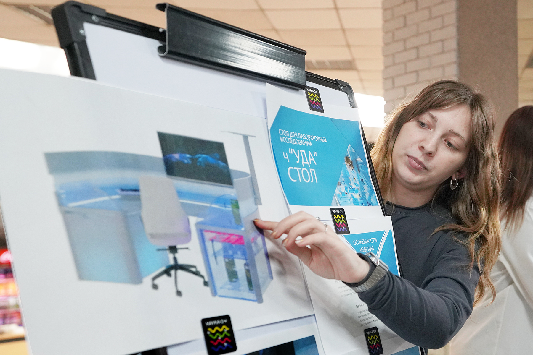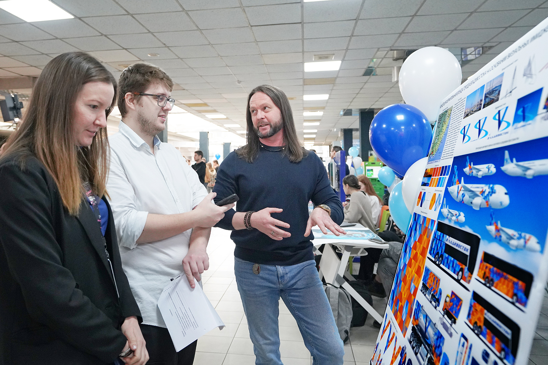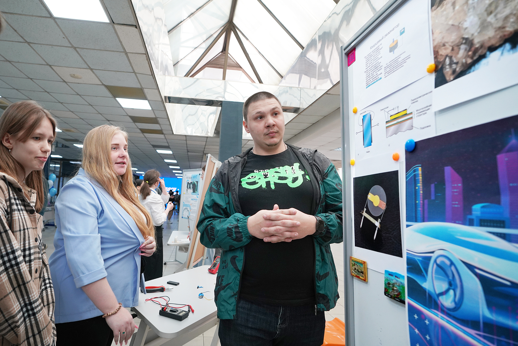 Открылся праздник выставкой-конкурсом научных работ студентов «Смелые идеи для будущего». Молодые исследователи представили около 30 проектов, подготовленных совместно с научными руководителями.
