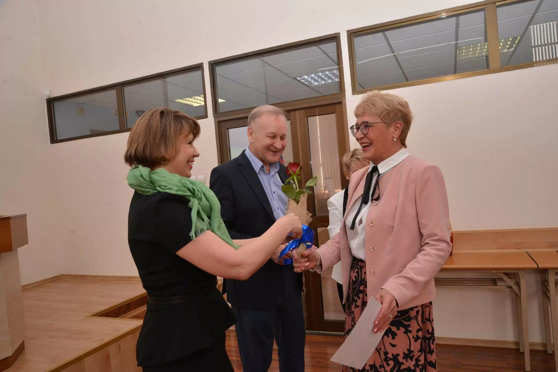 Персональные поздравления ректора ВГУЭС получили заведующая кафедрой международного маркетинга и торговли Людмила Драгилева - с 30-летним юбилеем работы во ВГУЭС, доцент кафедры физкультурно-оздоровительной работы Людмила Матвеева, специалист кафедры международного маркетинга и торговли Елена Турченко, доцент кафедры дизайна и технологий Елена Розанова, инженер кафедры межкультурных коммуникаций и переводоведения Юрий Зайцев, доцент кафедры информационных технологий и систем Юрий Левашов с 25-летним юбилеем работы во ВГУЭС.