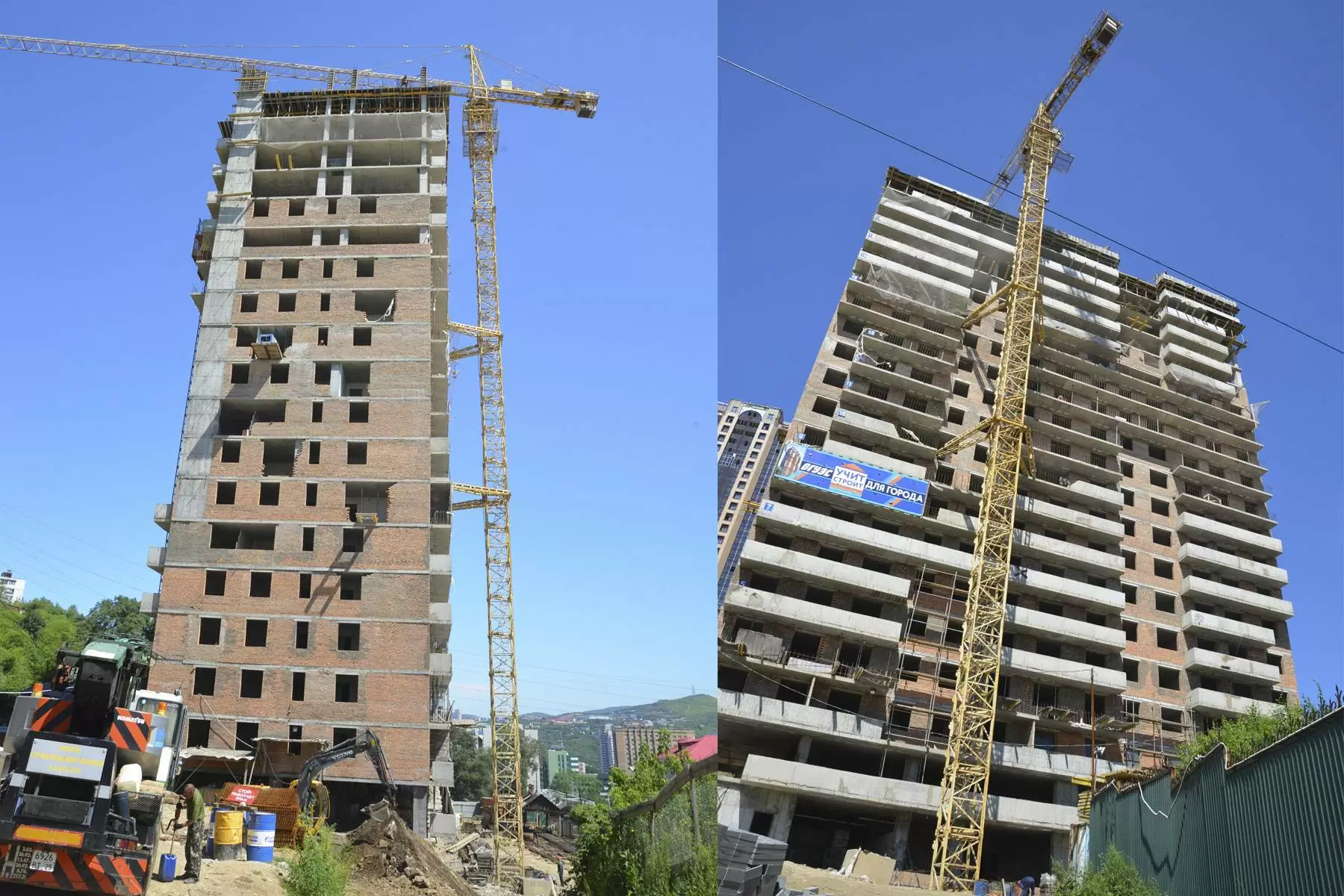 Как уже сообщалось, возведение многоквартирного жилого дома для профессорско-преподавательского состава ВГУЭС в районе Голубиной пади началось 27 января этого года. За время с начала строительства уже возведены 20 этажей.