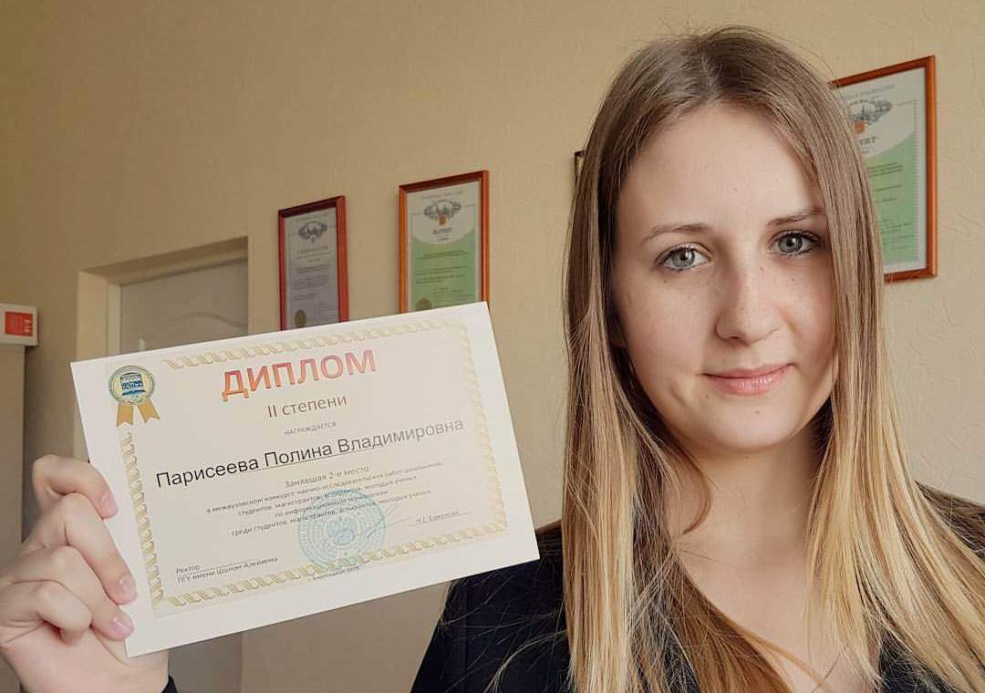 В горячую пору защит выпускных квалификационных работ бакалаврами и магистрантами удалось пообщаться с однокурсницей Анжелики Правосудовой – Полиной Парисеевой, также получившей накануне диплом II степени межвузовского конкурса научно-исследовательских работ среди студентов, магистрантов и молодых ученых по информационным технологиям.