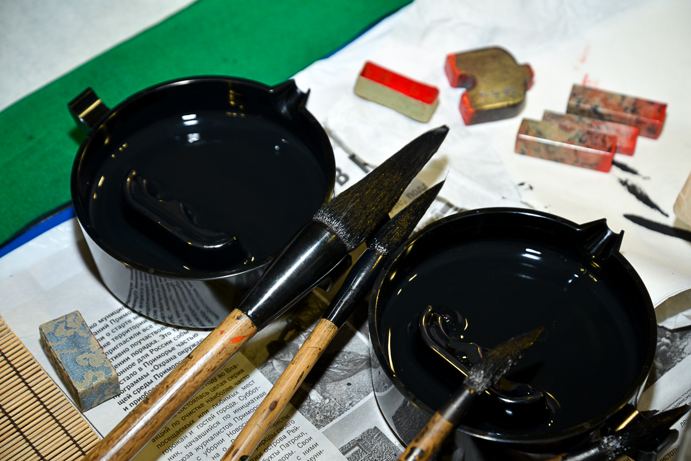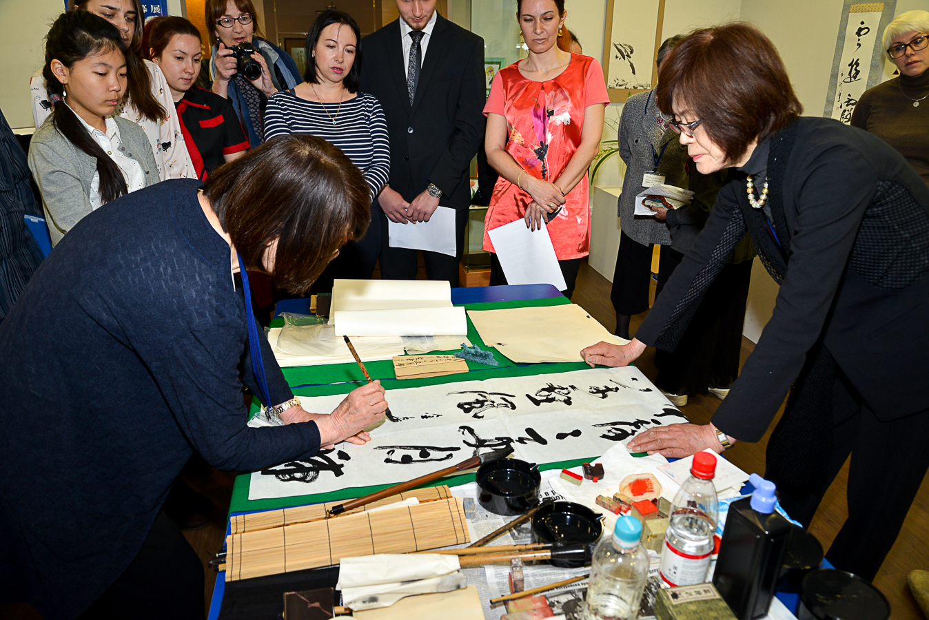 Преподаватели общества «Дзуйун» с большим удовольствием продемонстрировали гостям выставки, как из-под кисти мастера появляется настоящее произведение искусства. Все желающие имели возможность попробовать себя в роли каллиграфов и забрать с собой свои шедевры.