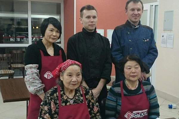 Японские мастера с удовольствием поделились рецептами и маленькими секретами приготовления жареных лепешек окономияки (японская пицца или японские драники, в качестве наполнителя для которых используются разнообразные ингредиенты), супов с лапшой удон, креветкой, говядиной и других своих национальных блюд, входящих в меню закусок, обеда и ужина.