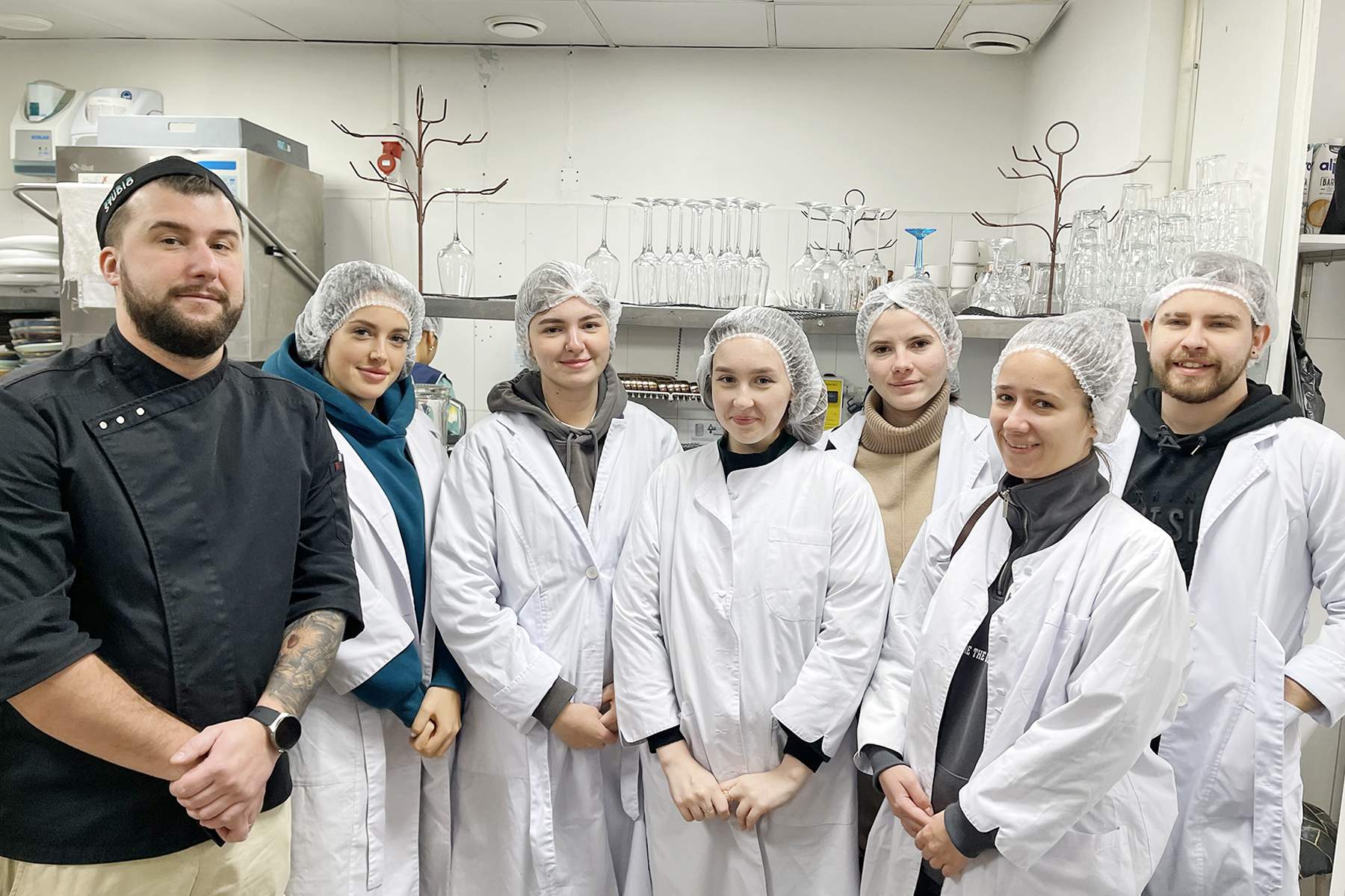 Так, в рамках практического занятия была организована экскурсия от шеф-повара Алексея Нестеренко, в процессе которой студентам объяснили технологический цикл предприятия и показали непосредственную организацию производства, расположение цехов и их взаимосвязь.