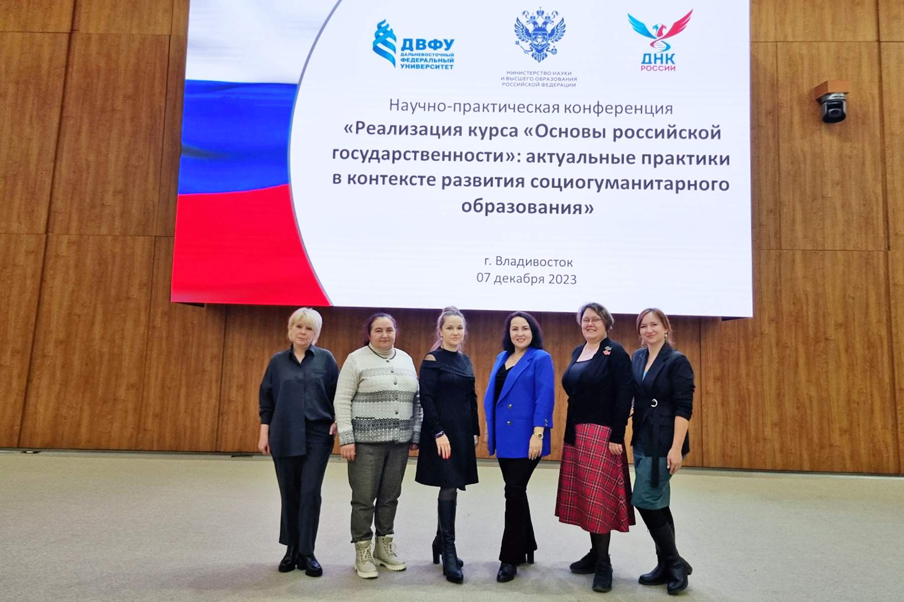 Во Владивостоке состоялась первая дальневосточная научно-практическая конференция - дискуссия, посвященная реализации курса «Основы российской государственности». Участие в конференции - дискуссии приняли преподаватели из разных вузов Дальнего Востока: ВВГУ, ДВФУ, ТОГУ, ДВИУ РАНХИГС. Участники поделились практиками успешного преподавания дисциплины и теми проблемами, с которыми они столкнулись.