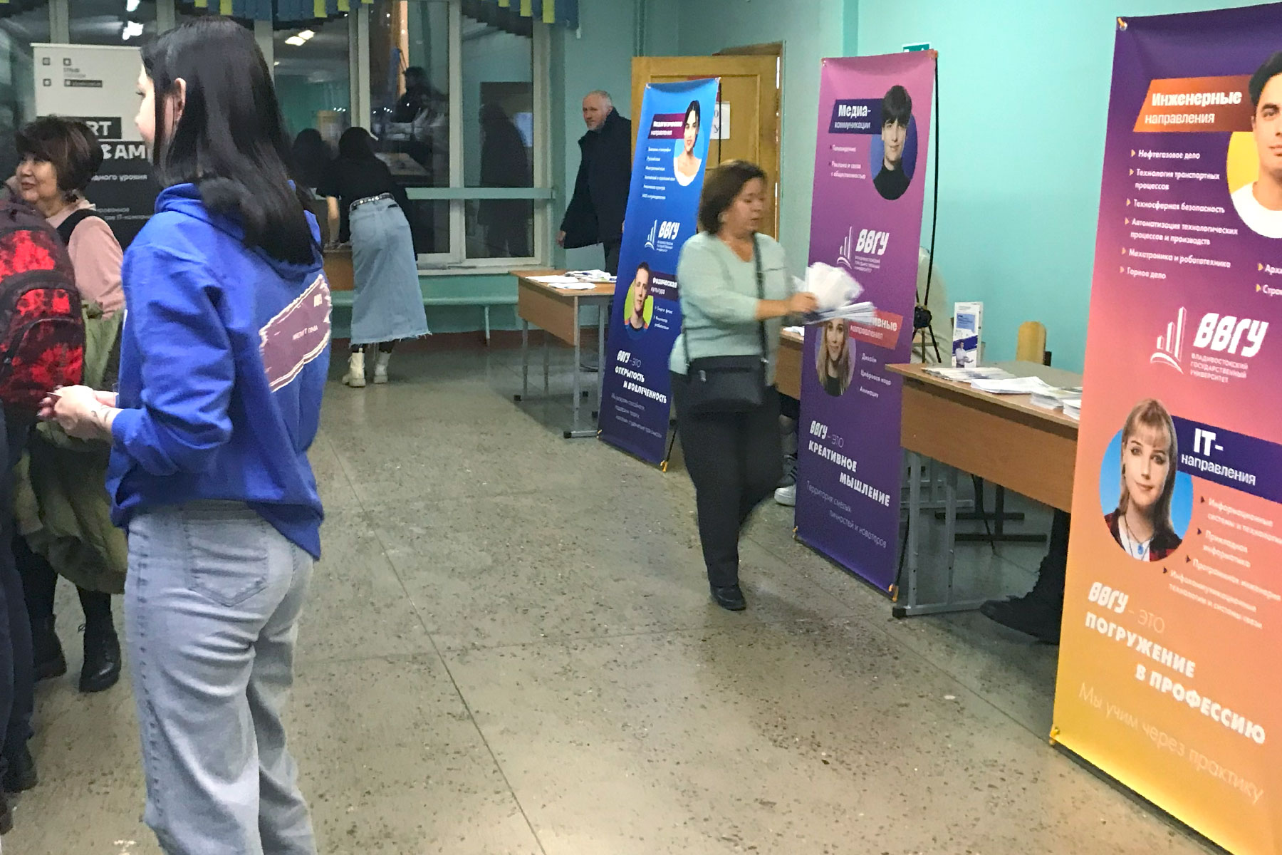 С 13-го по 27 ноября в школах Владивостока проходит Ярмарка вузов. Студенты-волонтеры и преподаватели институтов и колледжей ВВГУ проводят очные встречи со старшеклассниками и их родителями, консультируют будущих абитуриентов по вопросам поступления и обучения, приглашают на мастер-классы.