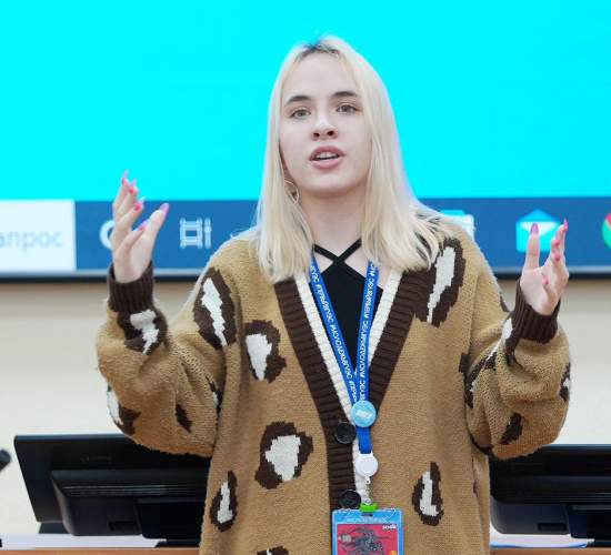 Забавная ситуация вышла, что я в школе была не самым активным человеком, старалась не выступать на публику. Были возможности, но не хотела себя проявлять. И в начале года я попала в Молодёжный тренинг-центр, где как-раз нужно выходить и делиться знаниями перед людьми. Так получилось, что я развила себя через развитие других. И теперь, как мне кажется, я уверенно могу выступить с докладом перед аудиторией или просто быть крутым ведущим. Также я состою в спортивном студенческом клубе, от которого, кстати, я и пошла на «Студенческая ночь» помощником.