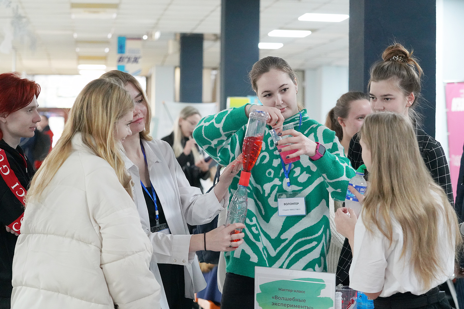 Погрузить абитуриентов и их родителей в жизнь Института помогли интерактивные площадки. На них ребята изучали клетки растений под микроскопом и проводили химические эксперименты, учились оригинально сервировать стол и выбирали интересную для себя профессию.