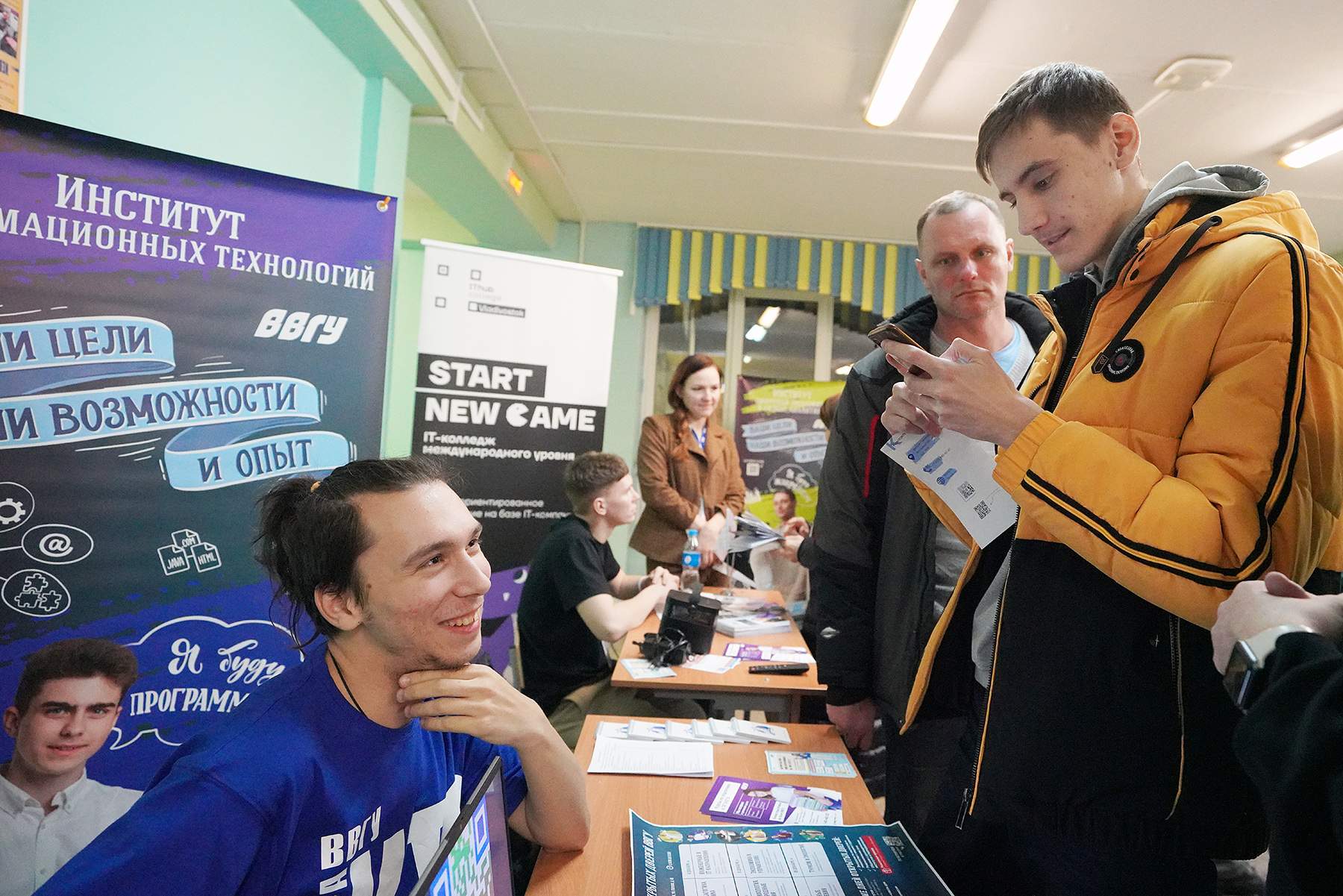 Чтобы школьникам и их родителям было легче разобраться в том, что их ждет во время обучения, ВВГУ организовал для абитуриентов мастер-классы. Так студент 4 курса Института информационных технологий Максим Пивкин провел для учащихся школы № 74 занятие по цифровой грамотности, а после ответил на вопросы абитуриентов о поступлении. Преподаватель IT-колледжа ВВГУ Даниил Бондаренко рассказал школьникам о создании игр на мастер-классе GameJam.