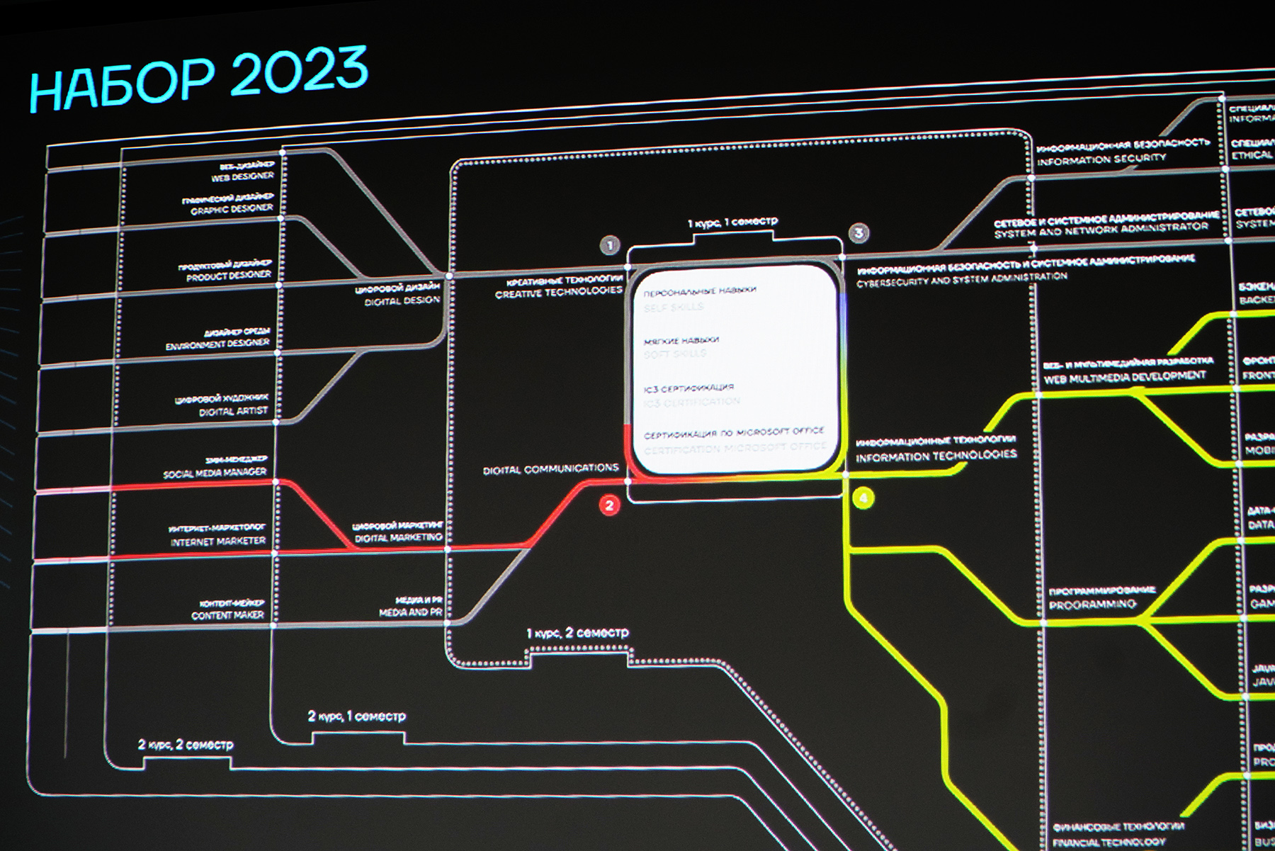 Кроме того, в колледже начинает работу и новая Кафедра цифровых коммуникаций. Здесь студенты получат знания в области продвижения товаров и услуг в интернете и получат бизнес-роли интернет-маркетолога или SMM-специалиста.