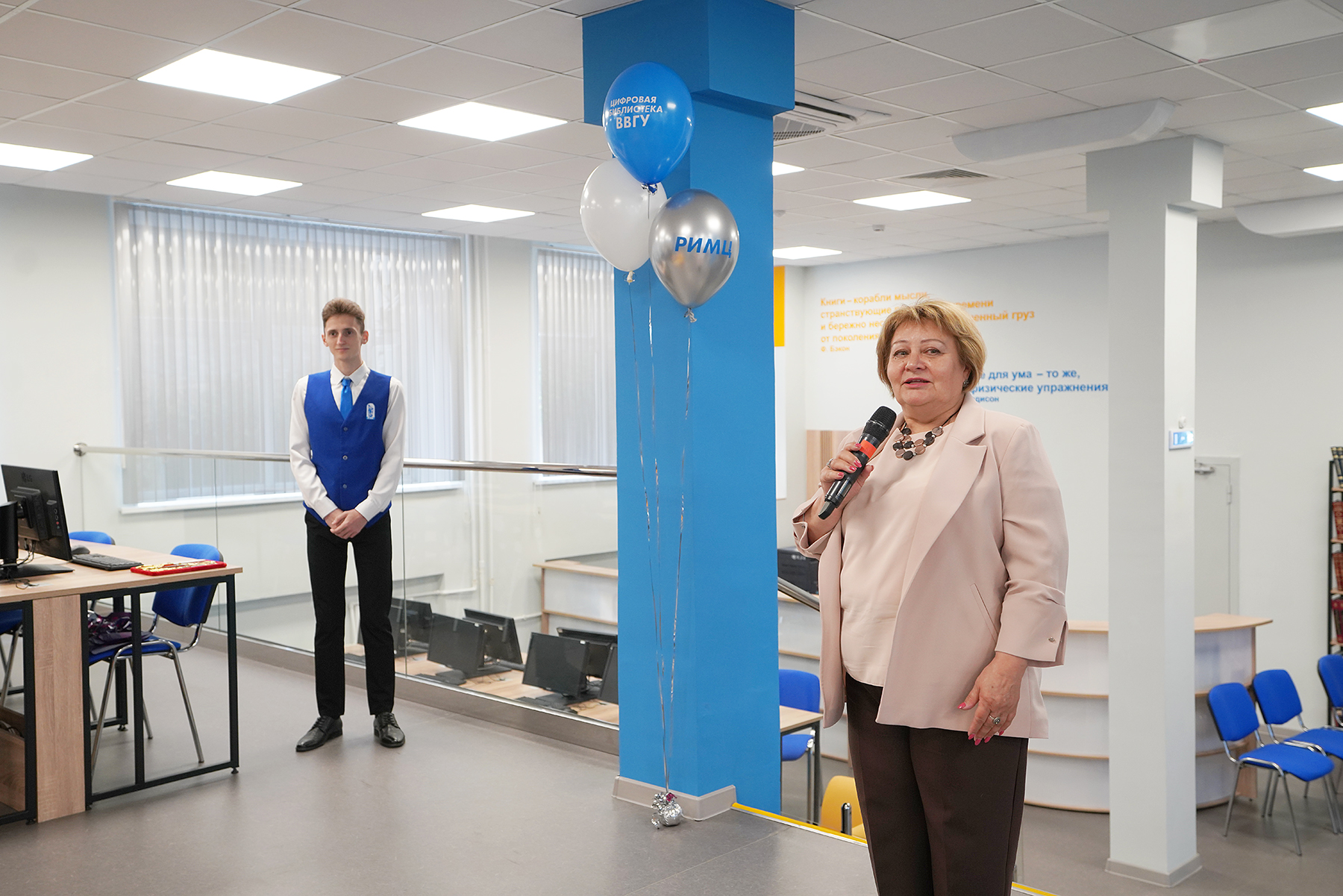 Ректор ВВГУ доктор экономических наук, профессор Татьяна Терентьева поздравила всех с этим большим событием, особо подчеркнув, что открытие новой современной библиотеки соответствует процессам трансформации в жизни университета, а место традиционных библиотечных форматов и практик занимают современные технологии и подходы.