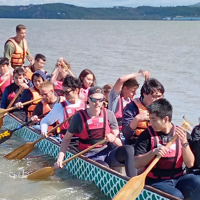 Завершающим и самым эмоциональным этапом спортивного праздника стал заезд на 100 м в составе смешанных интернациональных экипажей. Лучшее время показала команда, «костяк» которой составили студенты из Лаоса, тренирующиеся под руководством основателя спортивно-массовых проектов в гребле на лодках класса «Дракон» в Приморском крае Андрея Хоменко и имеющие опыт выступлений за команду ВВГУ в соревнованиях.