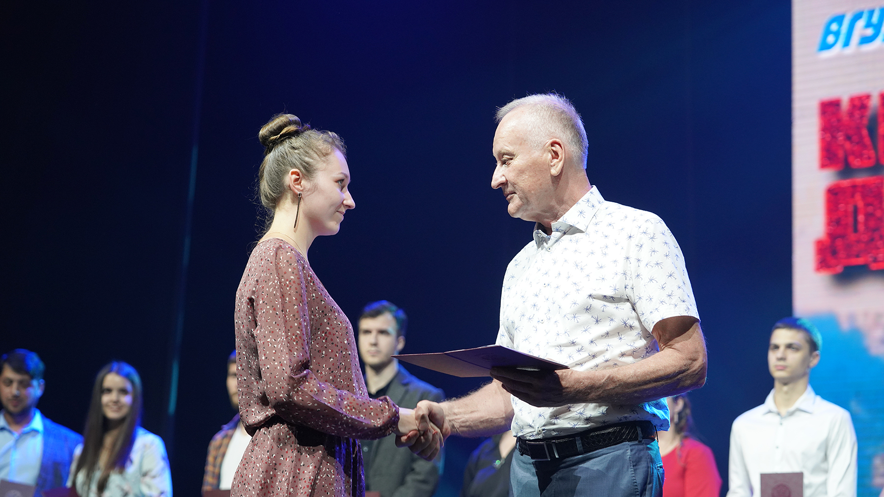 После торжественного вручения дипломов выпускники становились членами экипажа импровизированного космического корабля. Каждый из них отправился в своей длинное космическое путешествие прямо из концертного зала. ВГУЭС гордится своими самыми яркими звездами и желает им как можно дольше сиять на небе и зажигать своим светом всех вокруг. Всех, кто захочет продолжить обучение, университет приглашает поступать на программы магистратуры.
