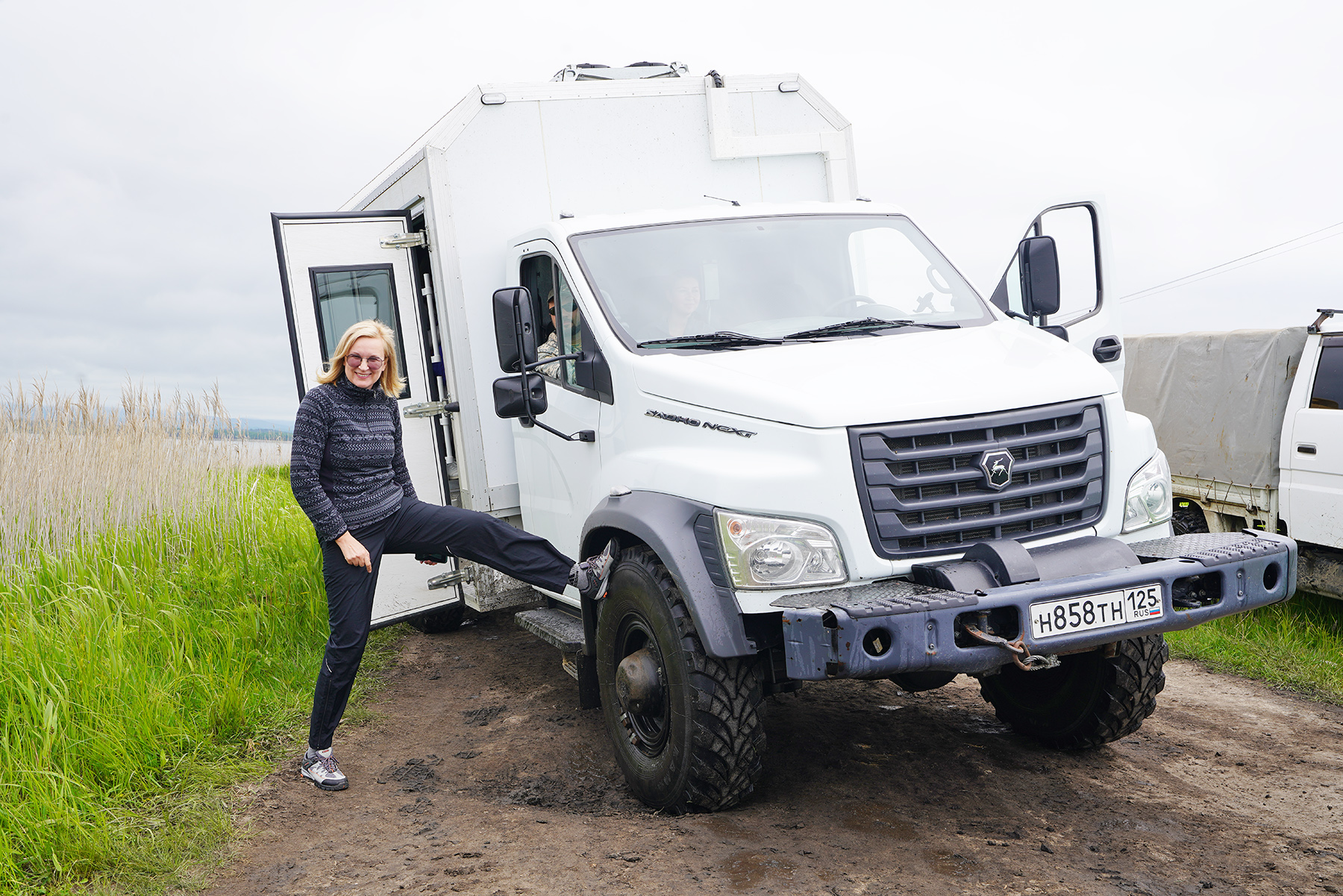 Поход по полуострову Краббе начался с посадки в автомобиль с кузовом-фургоном КУНГ, и это было отличное решение организаторов для путешествия по бездорожью Хасанского района. Дорога в одну сторону заняла почти пять часов, в том числе последний час по размытой грунтовке, где застревали даже внедорожники.