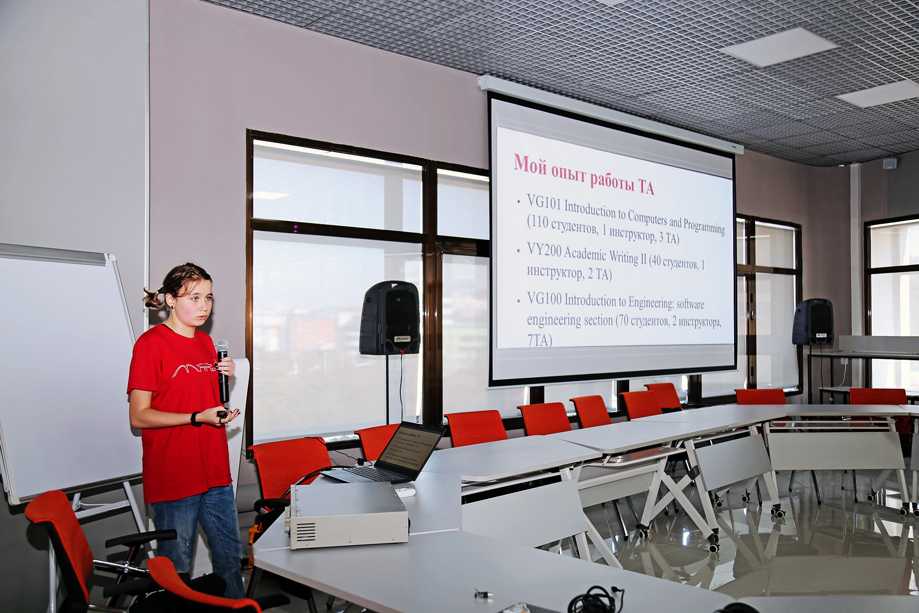 Во ВГУЭС с презентацией о передовой организации учебного процесса выступила студентка 3-го курса Шанхайского транспортного университета Елизавета Харитонова. Гостья поделилась с сотрудниками учебных подразделений вуза опытом работы в инновационной системе «TA» (teacher assistant) – помощников преподавателей, профессоров учебного заведения. Рассказала о том, кого набирают в ряды помощников, как получить данную должность, а также о преимуществах при обучении студентов по данной схеме. Помимо этого, Елизавета подробно рассказала о том, как оценивают студентов в университете Шанхайя и упомянула о реализации проектной деятельности учащимися.