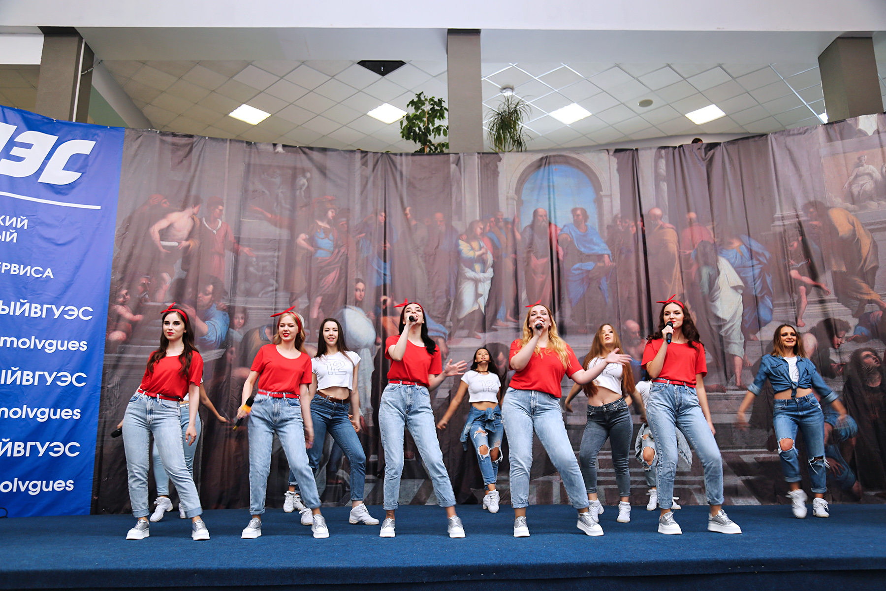 Торжественное мероприятие началось с поднятия четырех флагов под звуки гимна Российской Федерации. Эта честь выпала самым успешным студентам ВГУЭС – победителям и призерам научно-исследовательских конкурсов, крупнейших форумов и студенческих чемпионатов, активно участвующим в волонтерских движениях.