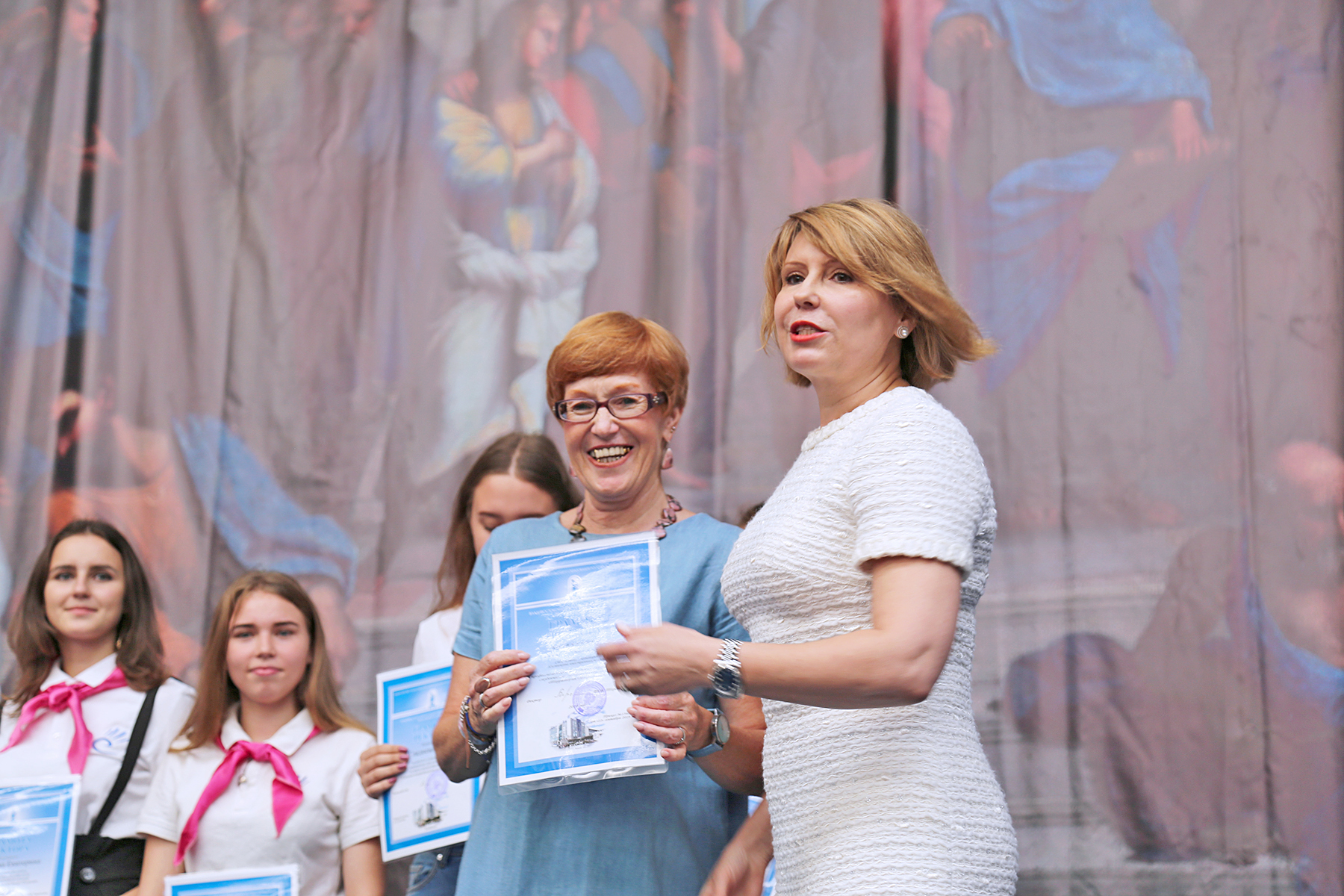 Ректор ВГУЭС Татьяна Терентьева вручила почетные грамоты университета студентам ВГУЭС, членам студенческого педагогического отряда «Территория инициативы», которые, рискуя своим здоровьем и жизнью, спасали детей во время пожара в лагере «Холдоми» 23-го июля. Грамоты получили Владимир Игнатов, Павел Марчук, Ольга Солодовник, Андрей Марчук, Екатерина Бржезицкая, Дарья Гладнева, Марина Зонова, Мария Карнович, Елизавета Киселева, Надежда Лошенкова, Софья Лукьянченко, Екатерина Новикова, Валерия Пентехина, Валерия Стригун и Леонид Тихомиров. Также слова благодарности ректора и заслуженную грамоту получила руководитель отряда «Территория инициативы», преподаватель Института иностранных языков ВГУЭС Галина Касьяненко, подготовившая молодых героев.