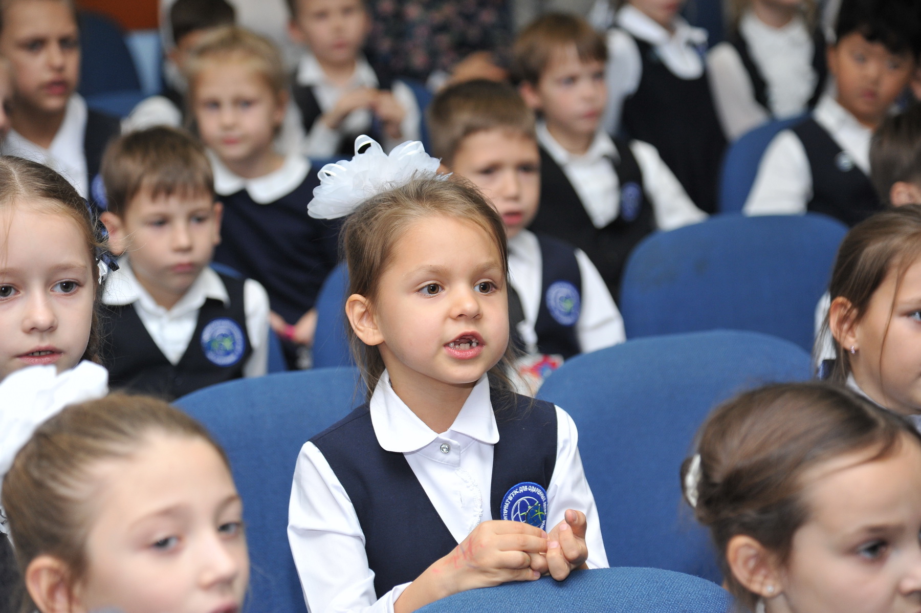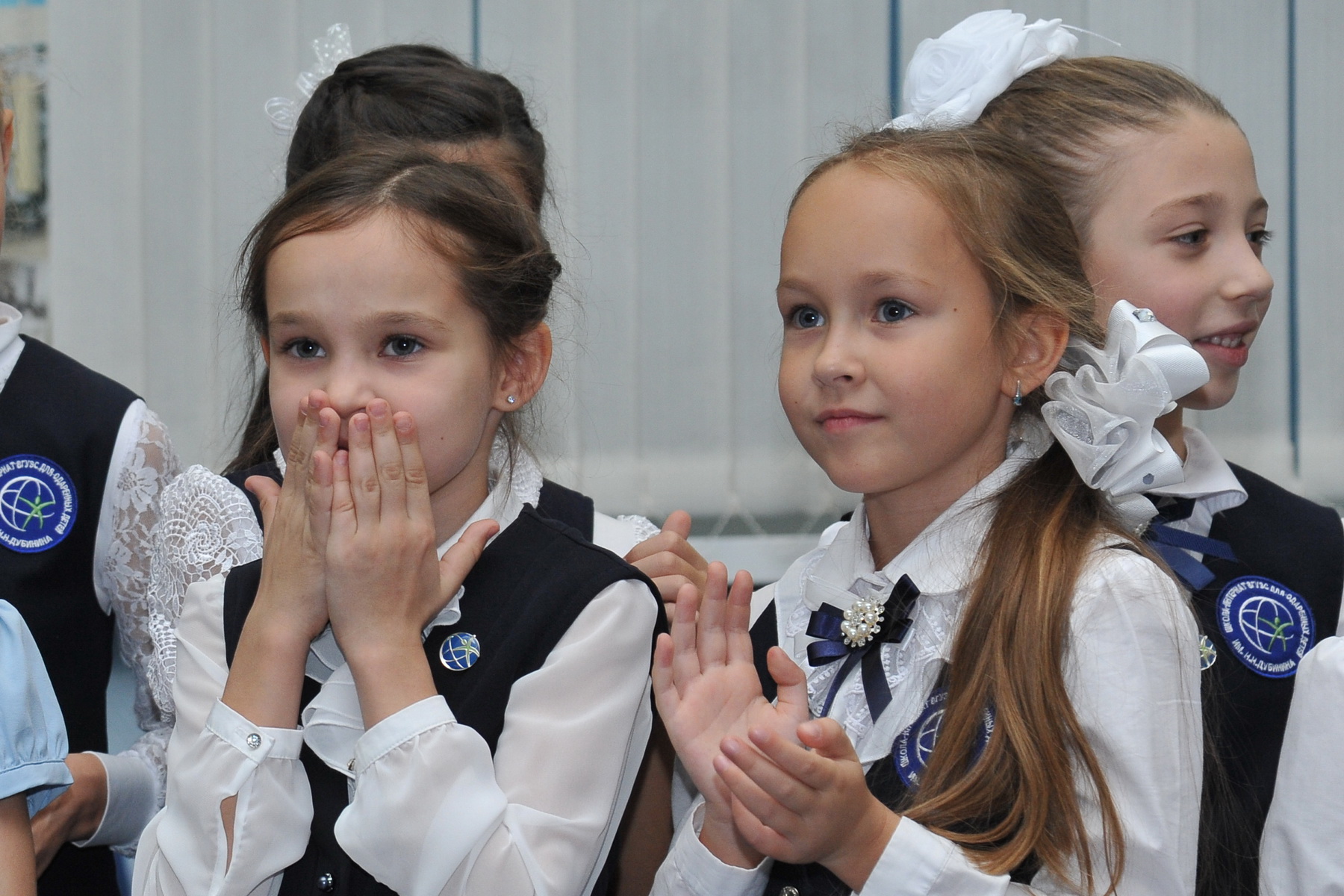 По традиции в день рождения школы прошла торжественная церемония посвящения новичков в ученики ШИОД. 150 ребят стали полноправными членами школьной семьи. Ученики выпускного класса надели новым ученикам значки с эмблемой ШИОД. Гордость школы – стипендиаты Губернатора Приморского края Екатерина Карнаухова и Иван Кузиненко напутствовали ребят: