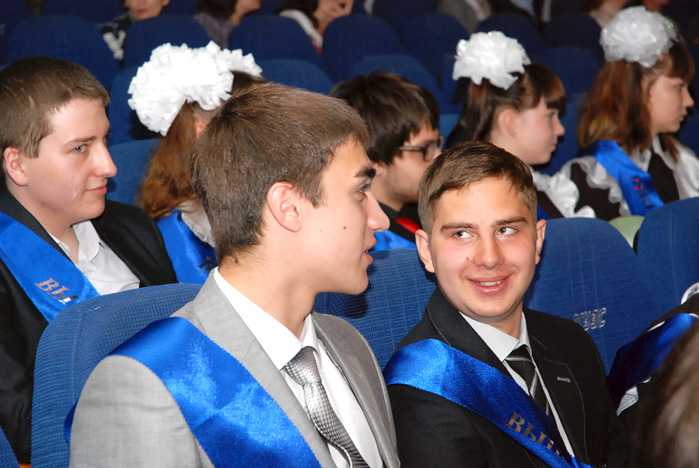 Благодарные ребята посвятили родителям и преподавателям песни – о дружбе, о прощании с детством и со школой, которые исполнили дуэтом Артем Катков и Стас Васильчено, Виолетта Жеурова, хор выпускников. А титулованная, несмотря на юный возраст, команда КВН «Лицей ВГУЭС» адресовала свои репризы школьной жизни и юбилею университета.