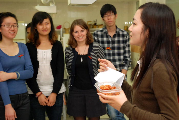 - А я приготовила кимчи, - традиционное корейское блюдо, которое известно во всём мире, - сказала студентка Соль Чжинран. – Это очень острое и солёное блюдо. Дело в том, что Корея находится на юге. Там круглый год много солнца и жарко, поэтому для хорошего самочувствия нужна соль.