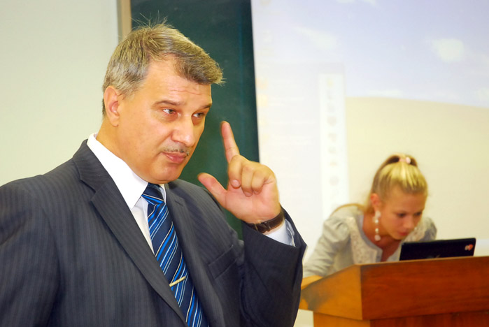 - В первую очередь я хочу поздравить вас всех с нашим профессиональным праздником, - обратилась к студентам старший преподаватель кафедры туризма, гостиничного и ресторанного бизнеса ВГУЭС Елена Ильяшенко, - Сегодня для вас мы приготовили подарок. Вести эту лекцию будет директор музея «Владивостокская крепость» Сергей Попов.