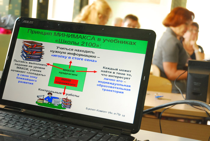 Начинать учебный год с семинаров-тренингов, в которых принимают участие все педагоги, стало для Академического колледжа и лицея ВГУЭС уже традицией. Основная цель семинаров – овладение технологиями образовательной системы «Школа 2100» - единственной в России модели непрерывного и системного обучения детей самостоятельными, успешными и уверенными в своих силах личностями, способными занять достойное место в жизни и нести ответственность за себя и своих близких. Ведущая семинара преподаватель Наталья Куршева познакомила коллег с основной концепцией ОС «Школа 2100» в сравнении с традиционными образовательными программами.