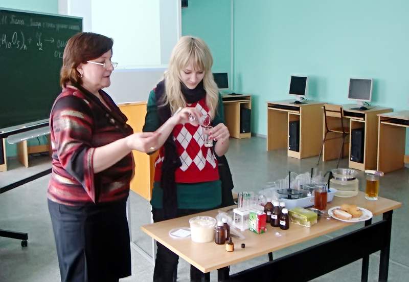 - Наш урок мы организовали в форме экспериментально - познавательного практикума в сочетании с фронтальной беседой. В рамках программы «Профориентация» пригласили учащихся девятого класса СШ № 54 и выпускного курса специальности «Повар» профессионального лицея №1 г. Владивостока,- рассказала преподаватель химии Надежда Фомина.